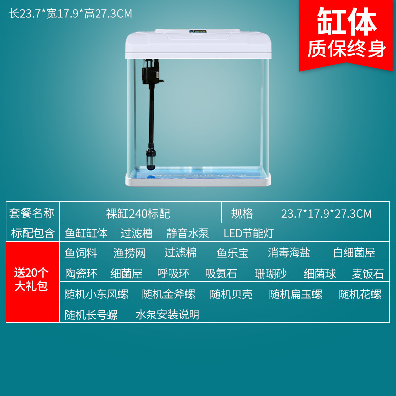 • HD 유리 240 표준/무료 20개 선물 패키지 [워터 펌프 + 조명 + 산소 + 여과 시스템 포함]