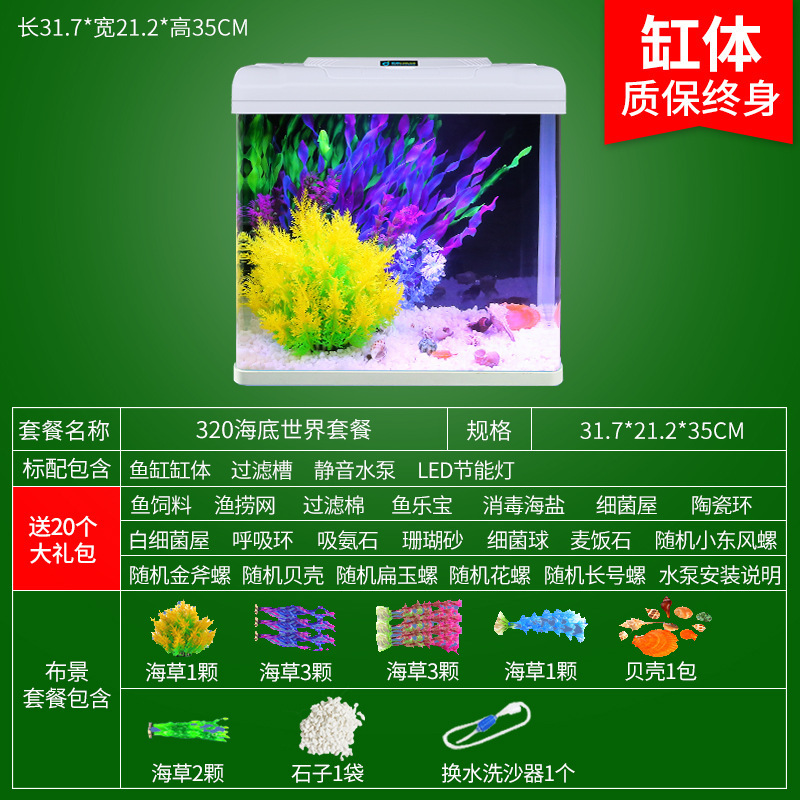• HD 유리 320 바다 전망/무료 20피스 선물 패키지 [워터 펌프 + 램프 + 산소 + 여과 시스템 포함]