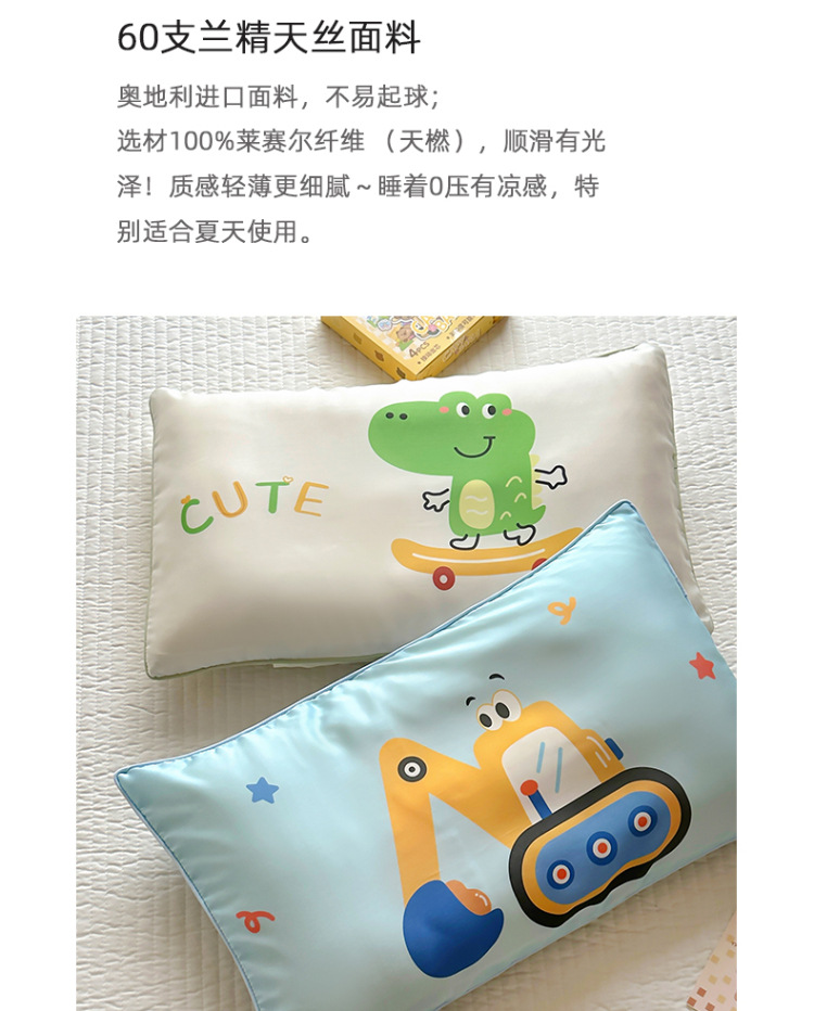 여름 어린이 텐셀 베개 커버 아기 작은 베개 커버 30x50 유치원 얼음 실크 시원한 실크 베개 커버 40x60스토어 가기