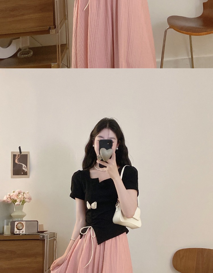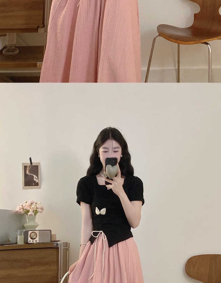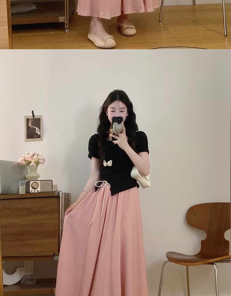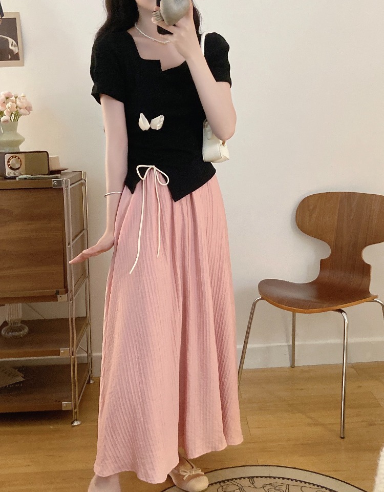 플러스 사이즈 스마트 여성 정장 스커트 여름 반팔 탑 뚱뚱한 소녀 슬리밍 스커트 하이 엔드 투피스 세트스토어 가기