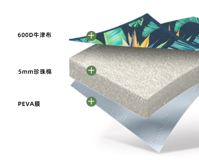 材质:600D牛津布+5mm珍珠棉+PEVA膜