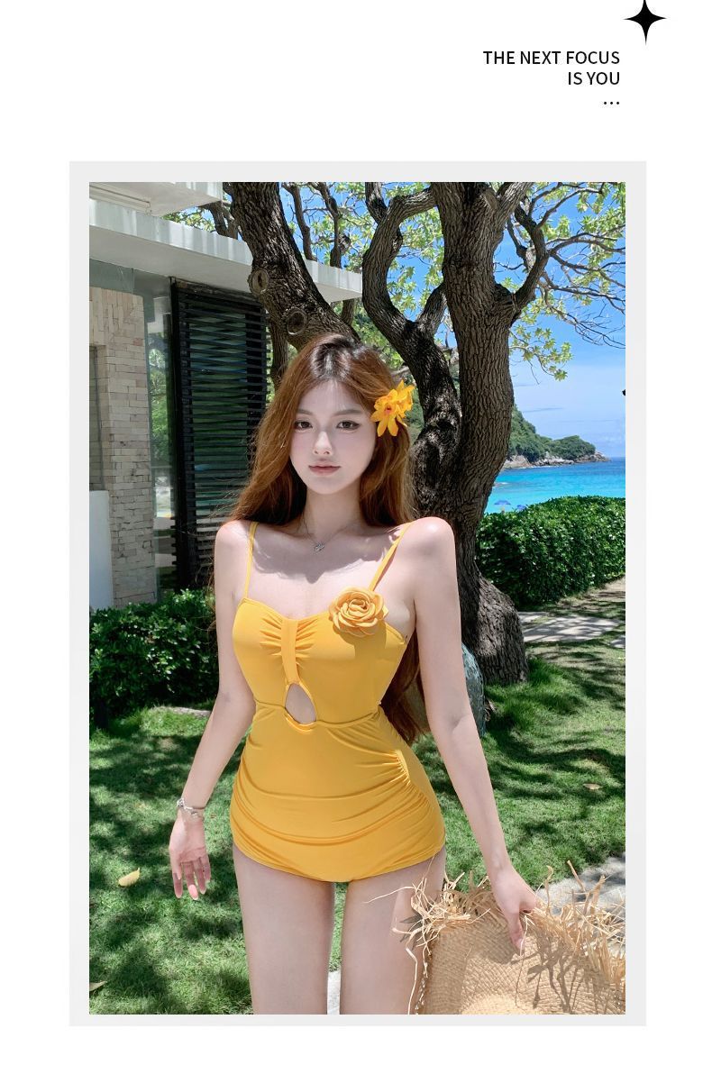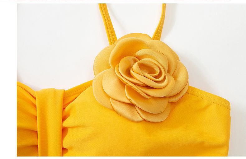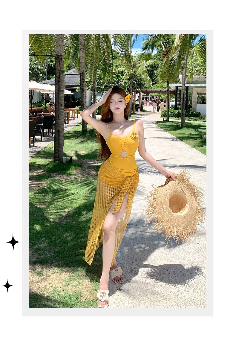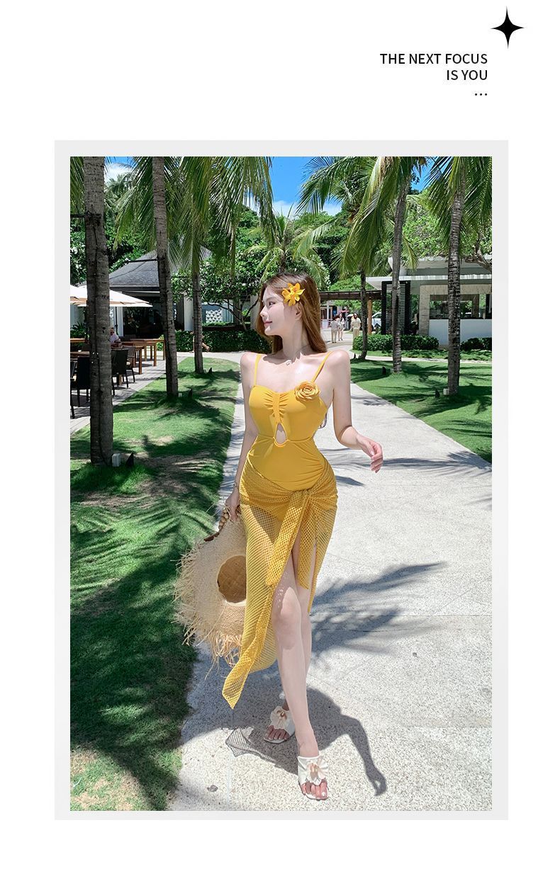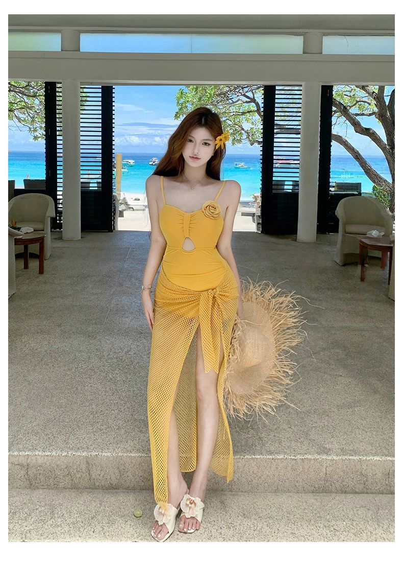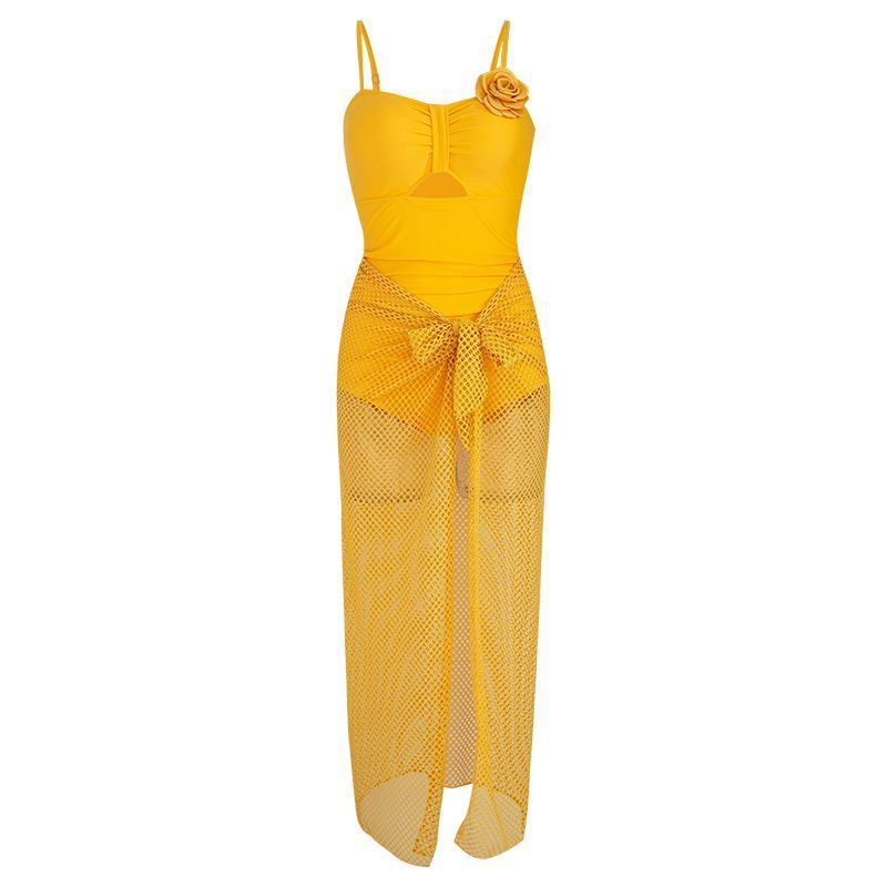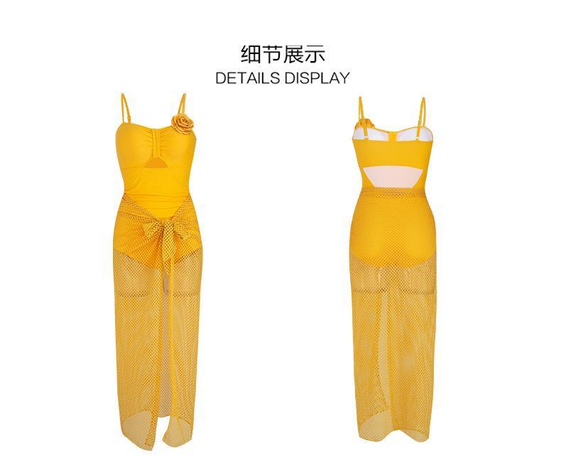 여성용 수영복 2025 새로운 스타일 노란색 서스펜더 원피스 슬리밍 비키니 아름다운 롱 스커트 비치 휴가 스타일