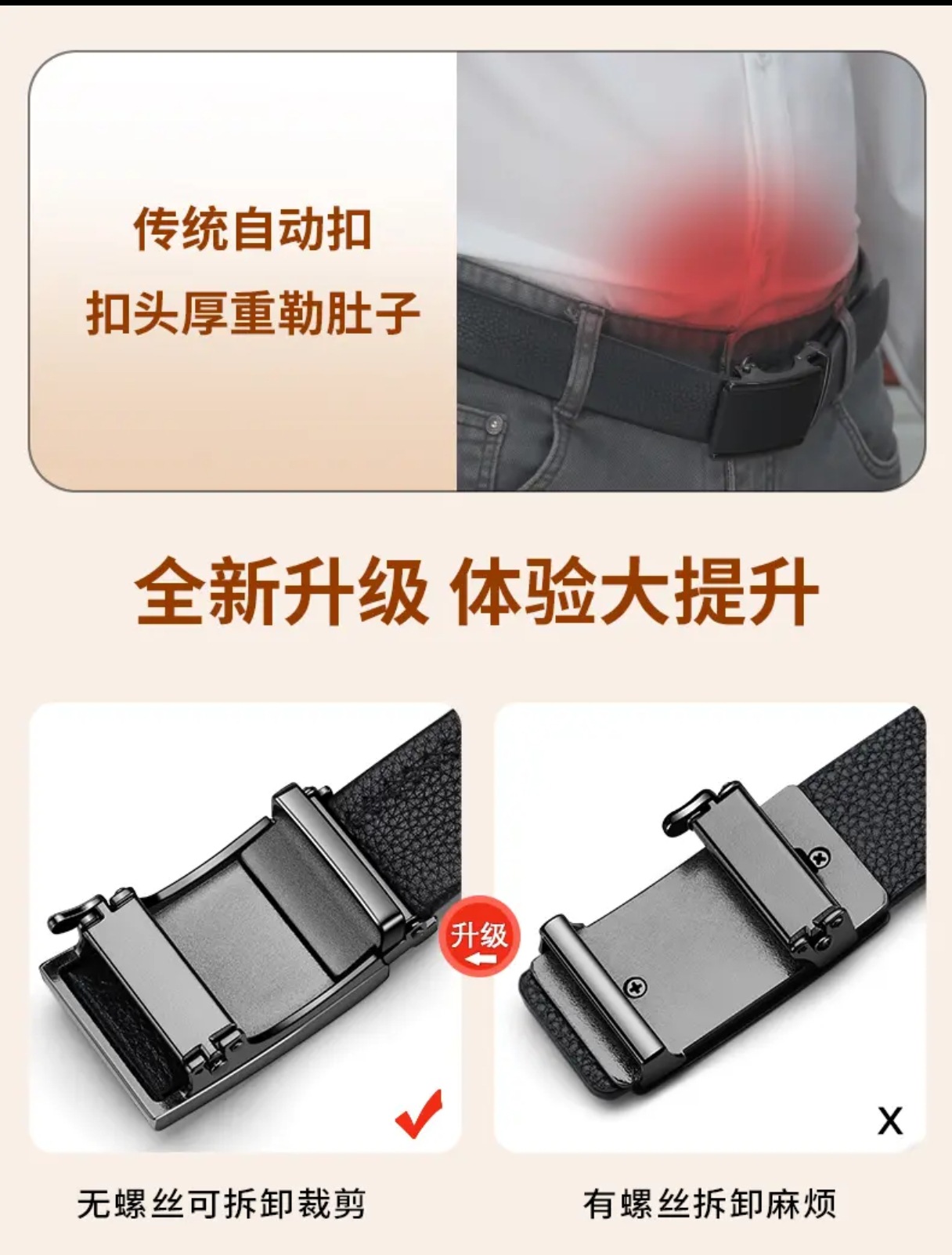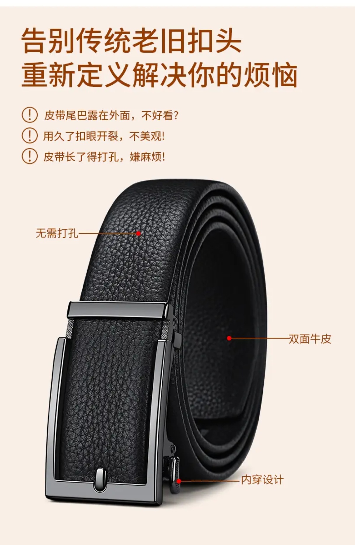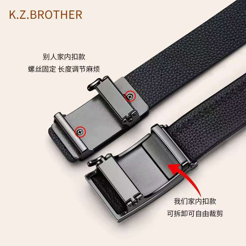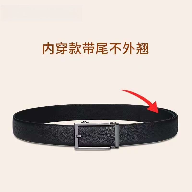 [1층 소가죽] 청년 및 중년층을 위한 남성용 천연가죽 벨트, 내부 버클, 노출되지 않는 테일 벨트, 캐주얼 트렌디 다용도 바지 벨트스토어 가기