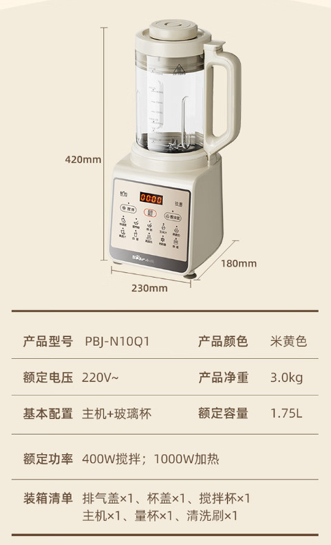 곰 벽 깨는 기계 가정용 다기능 소음 감소 예약 가열 완전 자동 두유 기계 주서기 PBJ-N10Q1