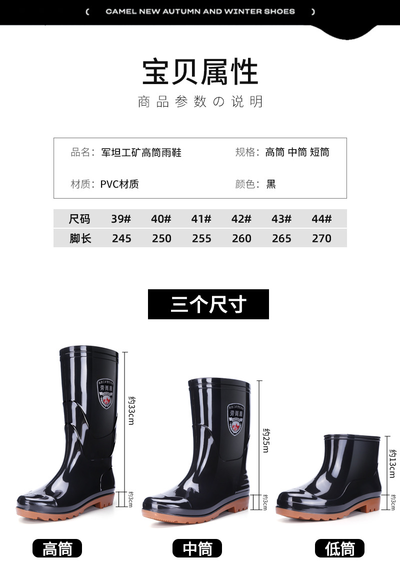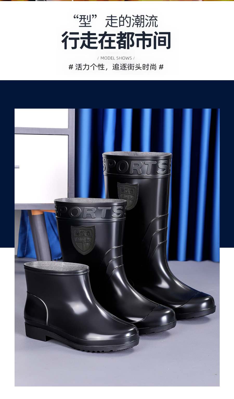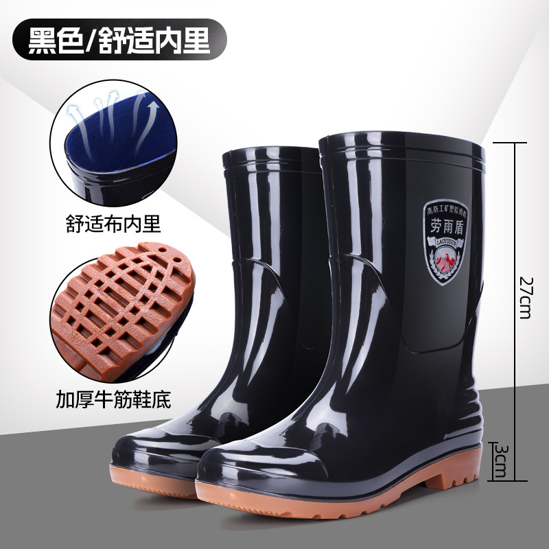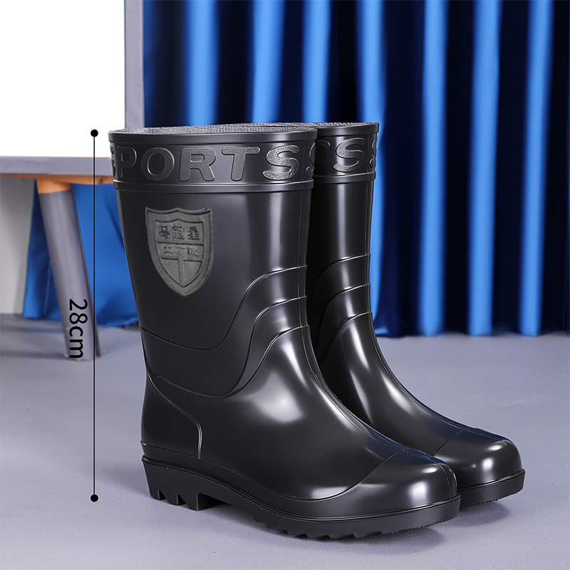 두꺼운 중간 튜브 노동 보호 장화, 힘줄 바닥 미끄럼 방지 PVC 주방 장화, 남성용 내마모성 높은 튜브 방수 신발스토어 가기