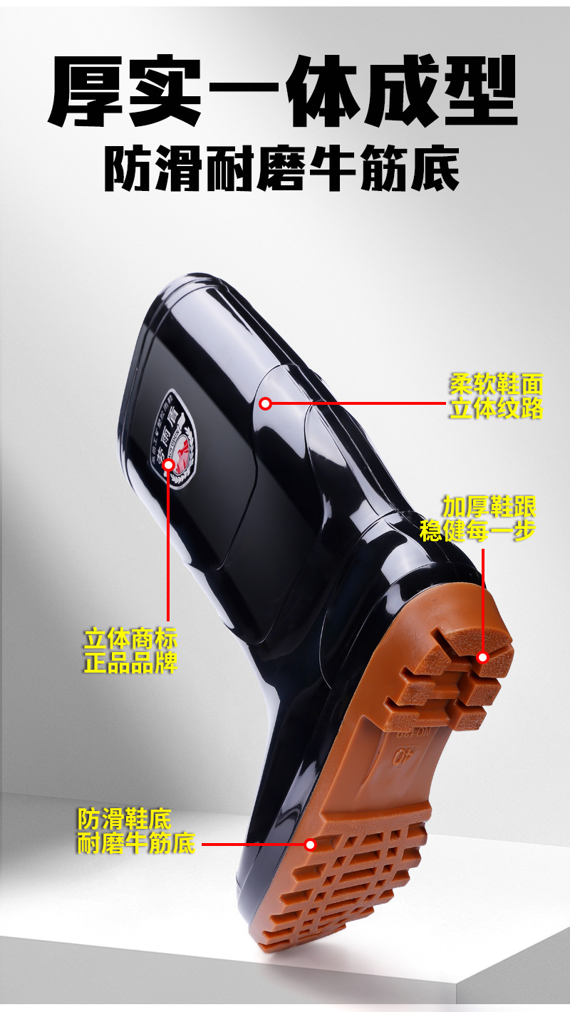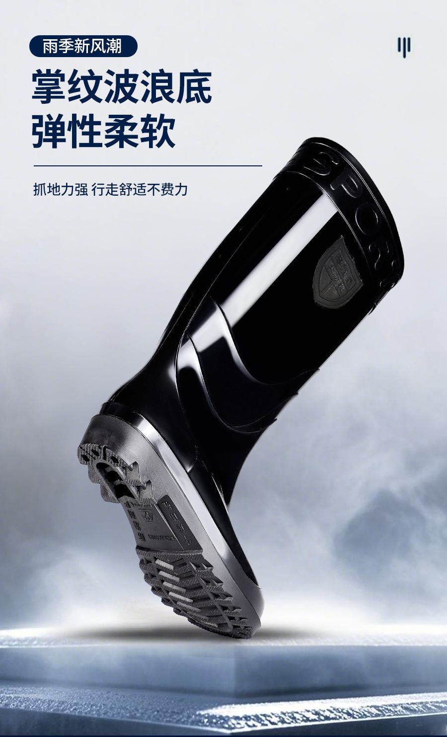 두꺼운 중간 튜브 노동 보호 장화, 힘줄 바닥 미끄럼 방지 PVC 주방 장화, 남성용 내마모성 높은 튜브 방수 신발