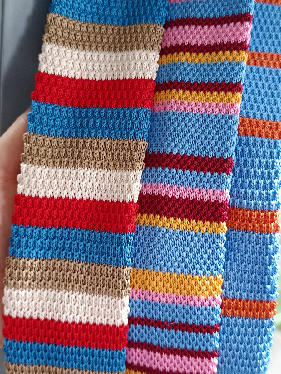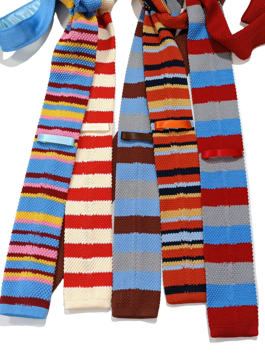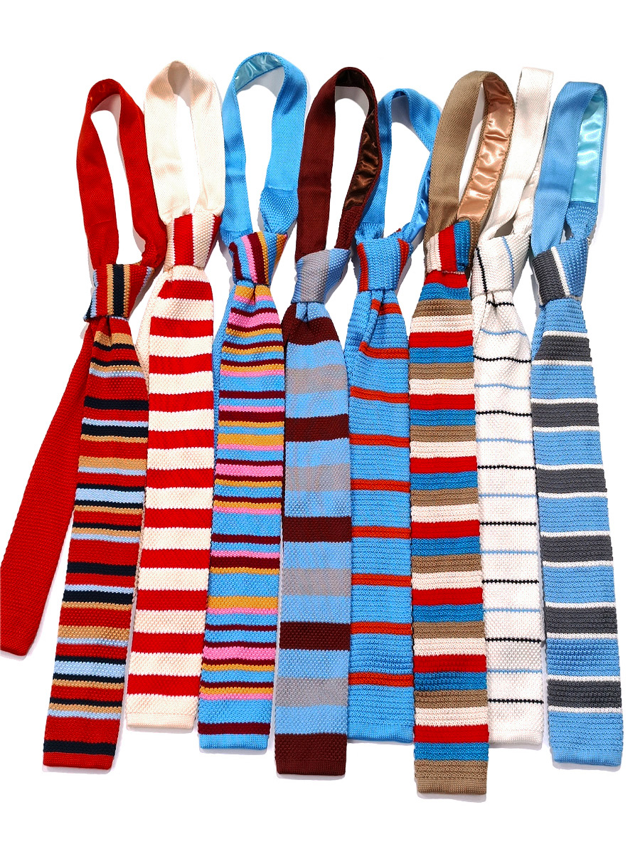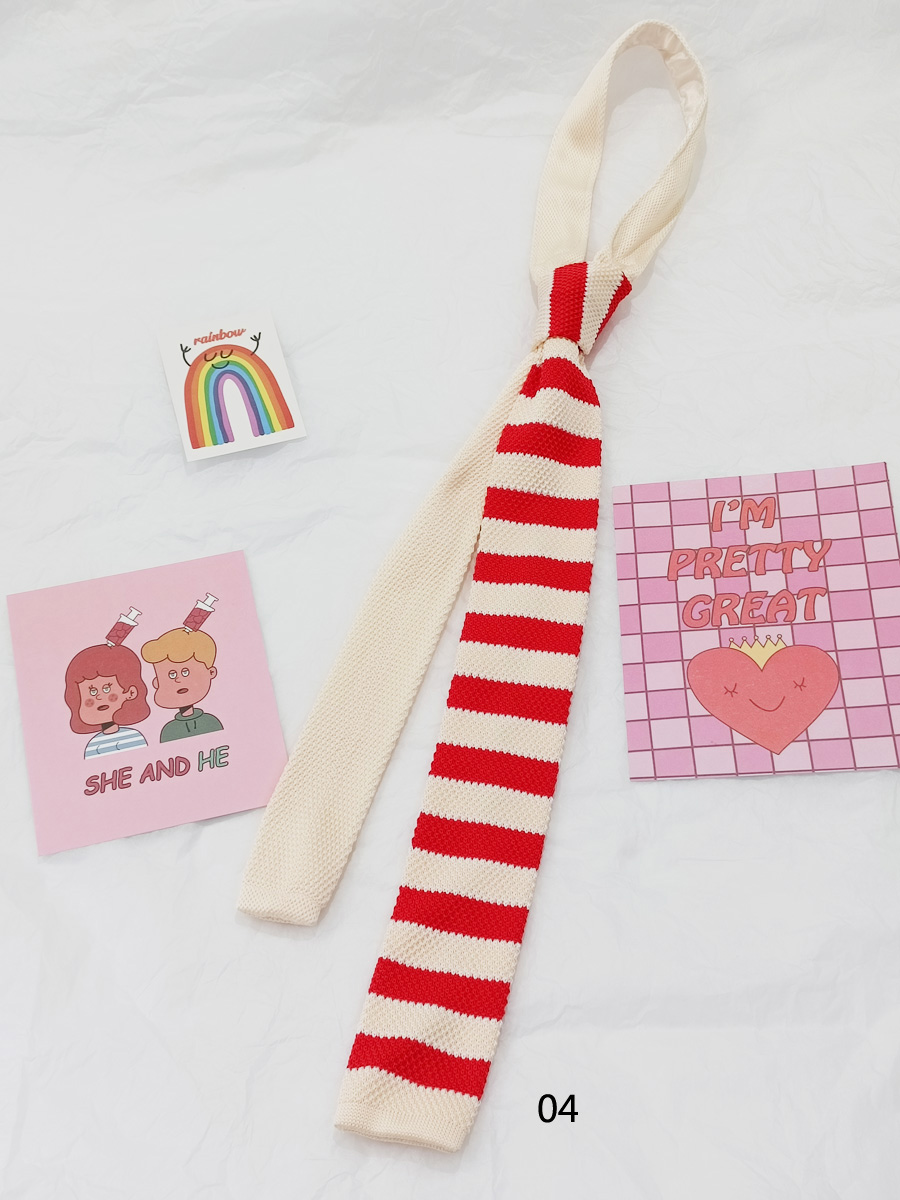 MIMI 가을 겨울 밝은 색상의 가로 줄무늬 니트 핸드 타이 여성 틈새 디자인 맞춤형 대비 색상 패션 매칭