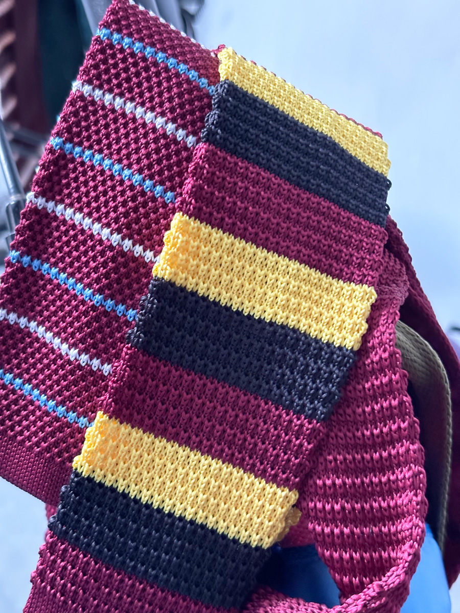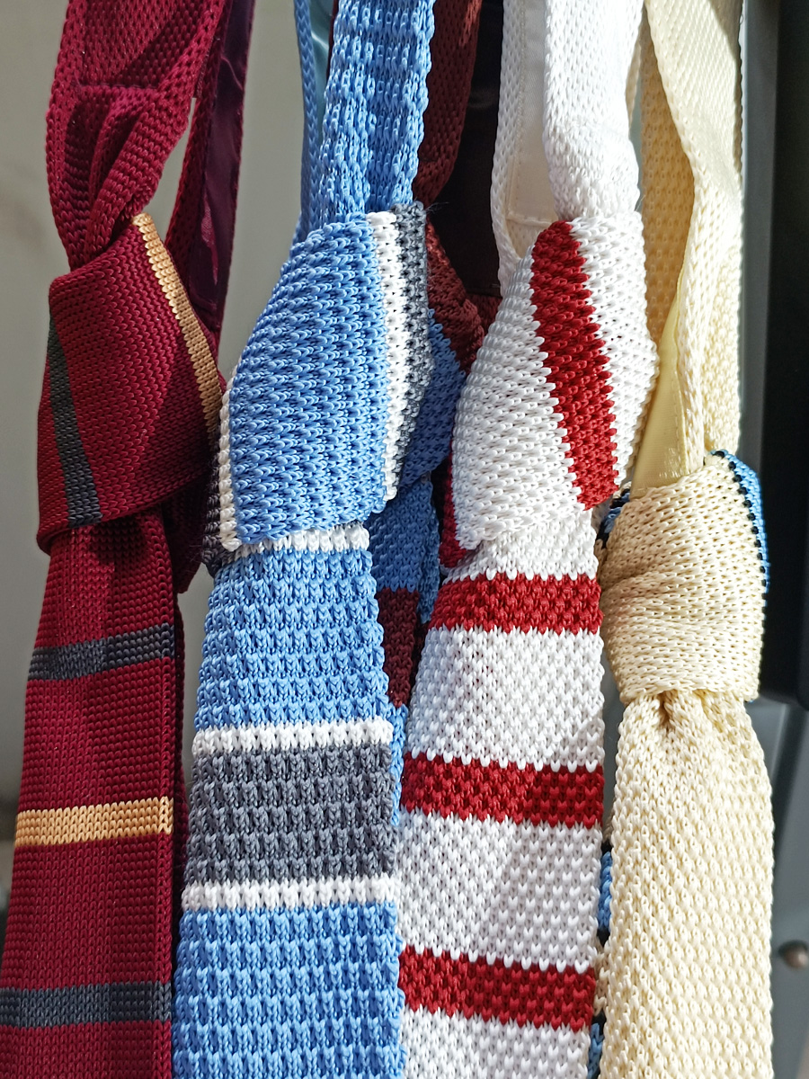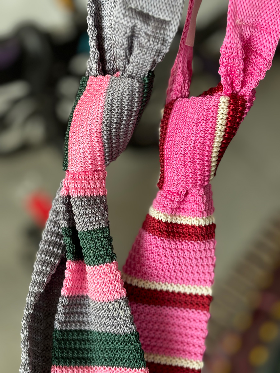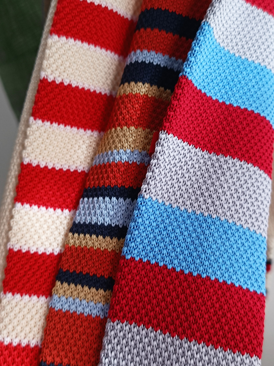 MIMI 가을 겨울 밝은 색상의 가로 줄무늬 니트 핸드 타이 여성 틈새 디자인 맞춤형 대비 색상 패션 매칭