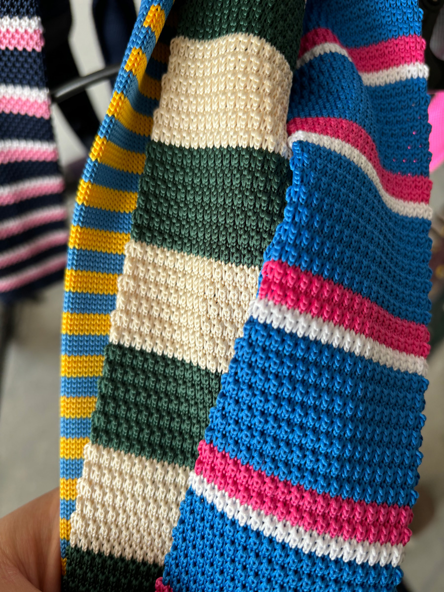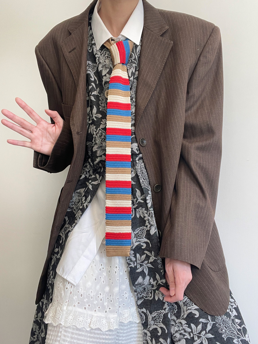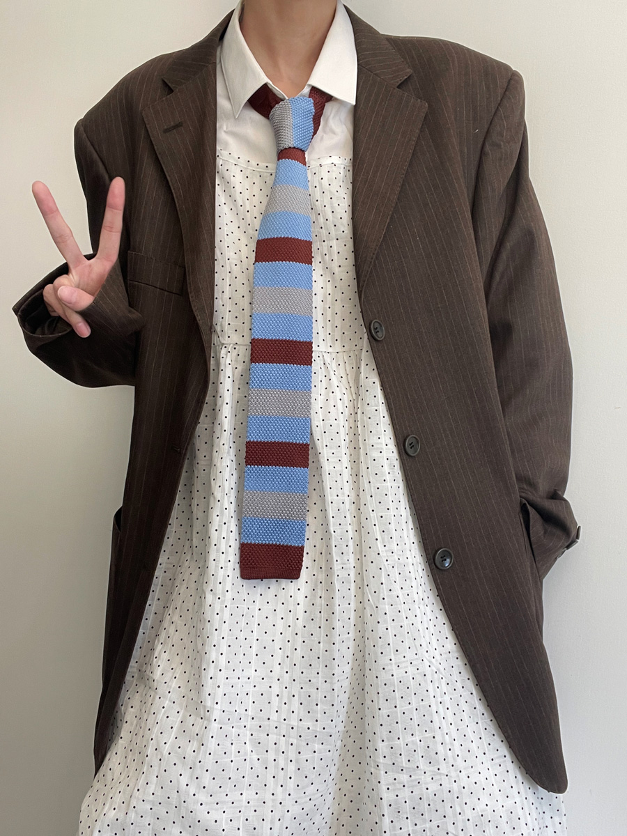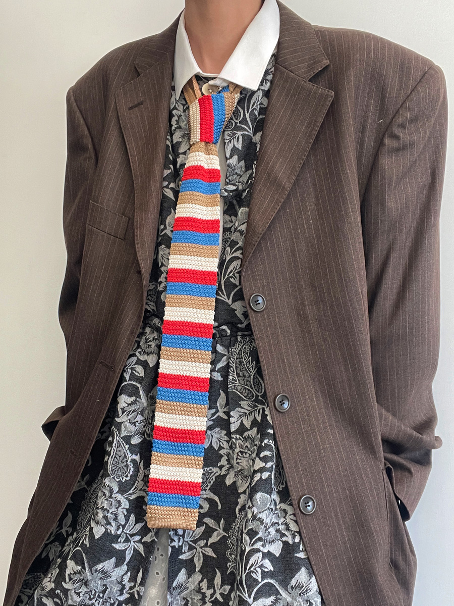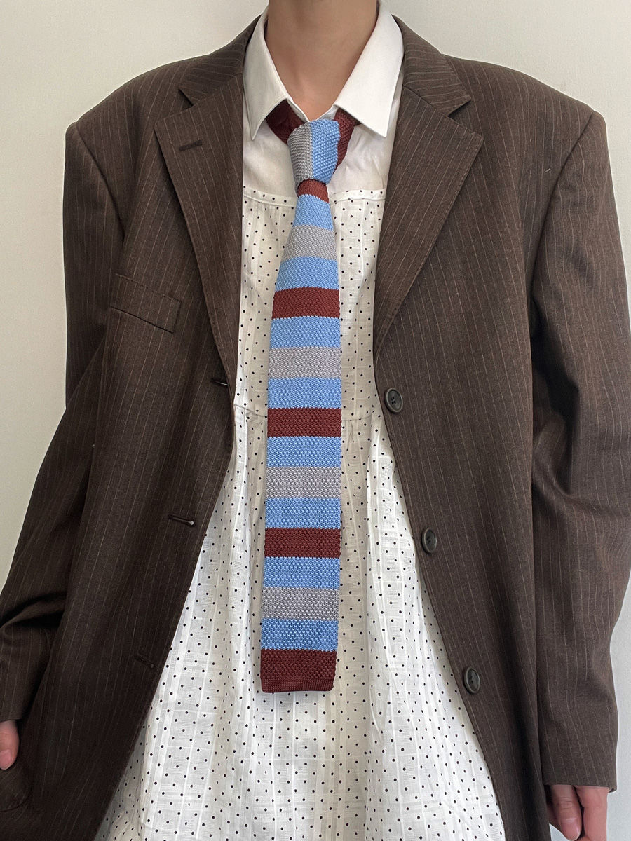 MIMI 가을 겨울 밝은 색상의 가로 줄무늬 니트 핸드 타이 여성 틈새 디자인 맞춤형 대비 색상 패션 매칭스토어 가기