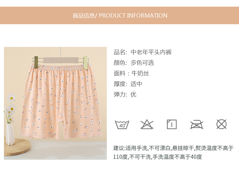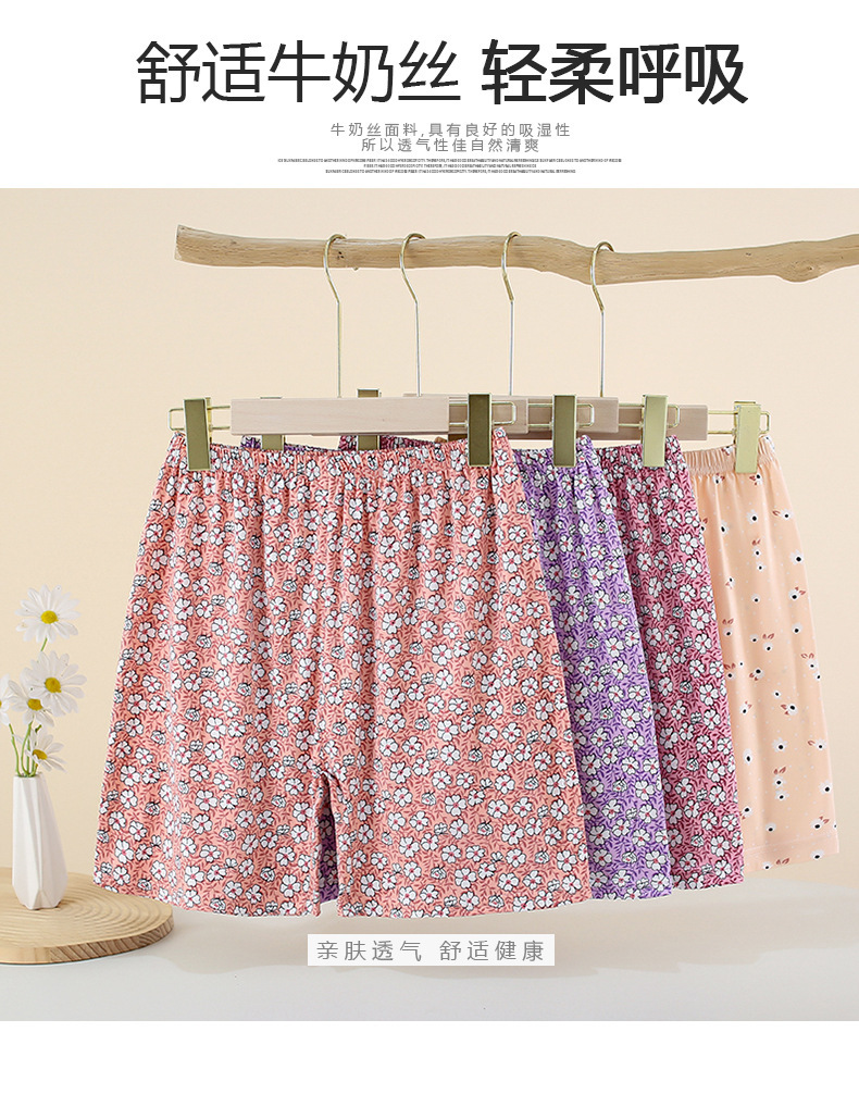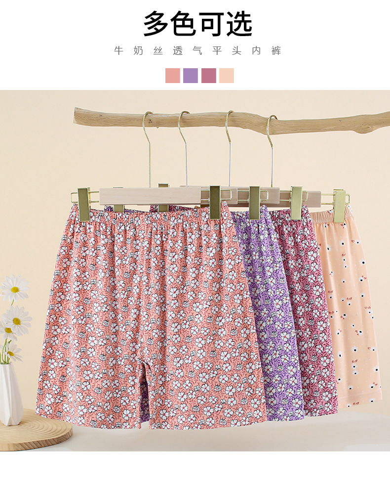 중년 및 노년 여성용 밀크 실크 반바지, 특대 사이즈, 얇은 홈웨어 플랫 코너 팬티, 꽃무늬, 엄마용 속옷, 대형 디자인스토어 가기