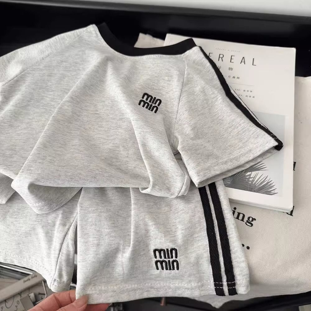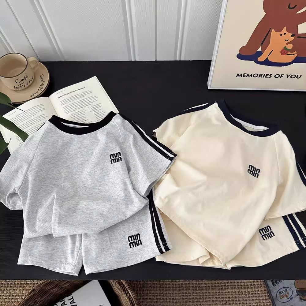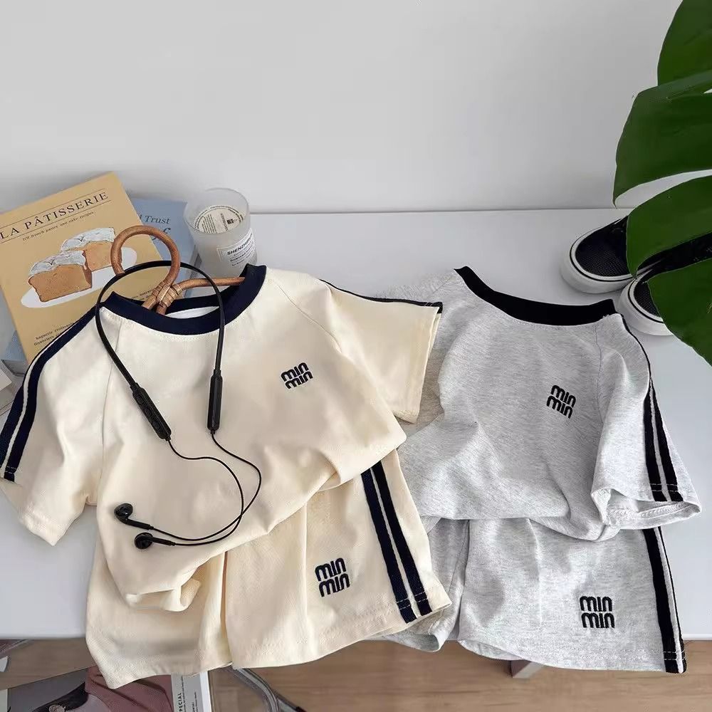 남성과 여성을 위한 면 반팔 반바지 스포츠 슈트, 새로운 여름 아동용 티셔츠 상의, 투피스 세트, 잘생긴