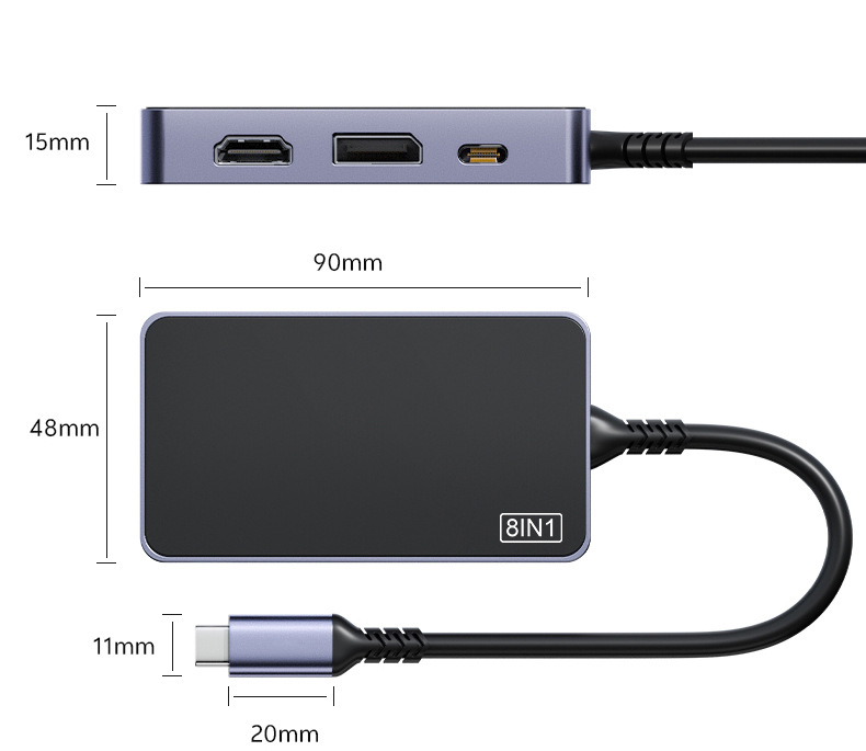 Typec 확장 도크 8-in-1 확장기 USB 분배기 다중 인터페이스 HDMI 네트워크 케이블 변환 어댑터 4K60Hz