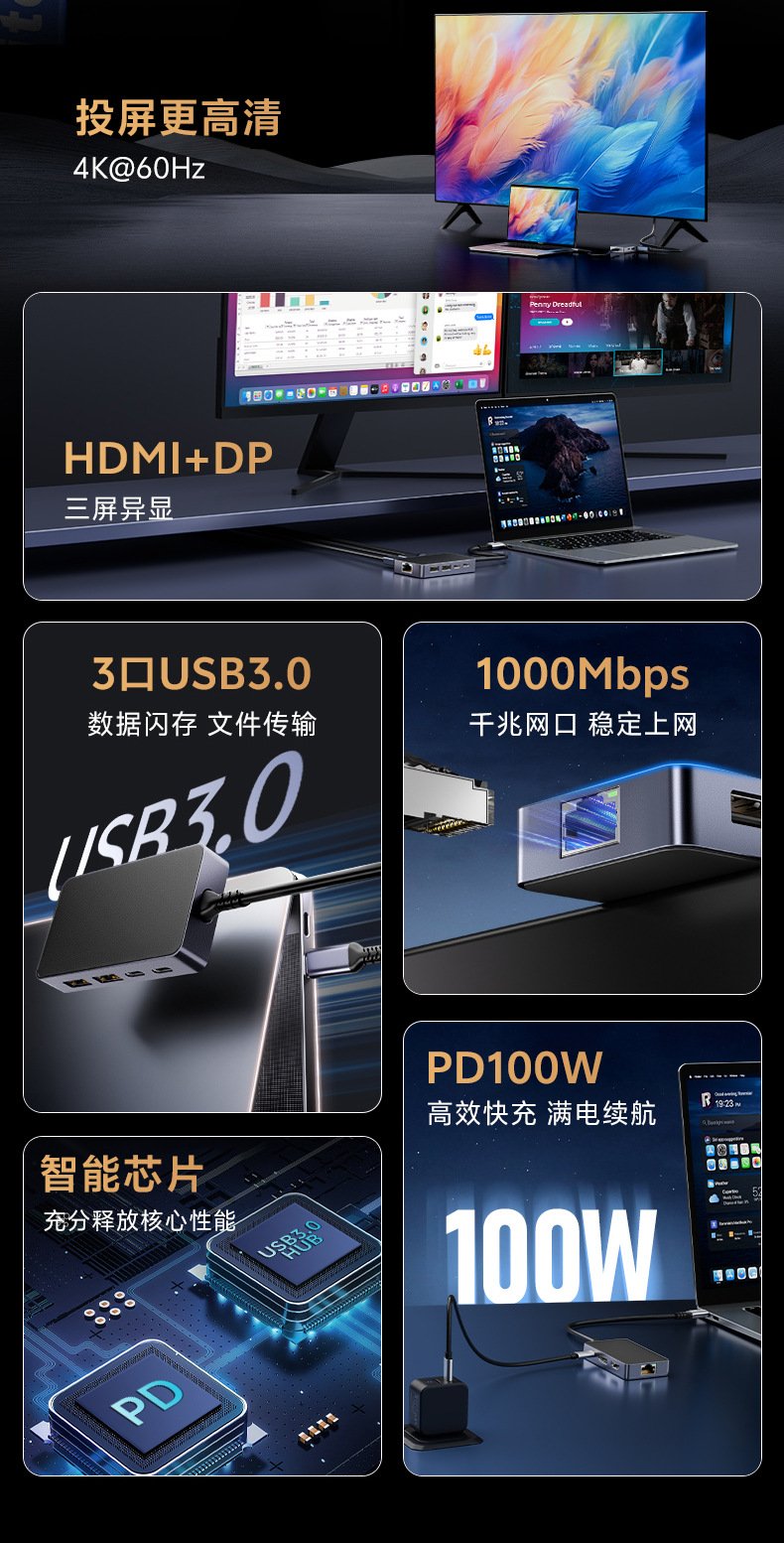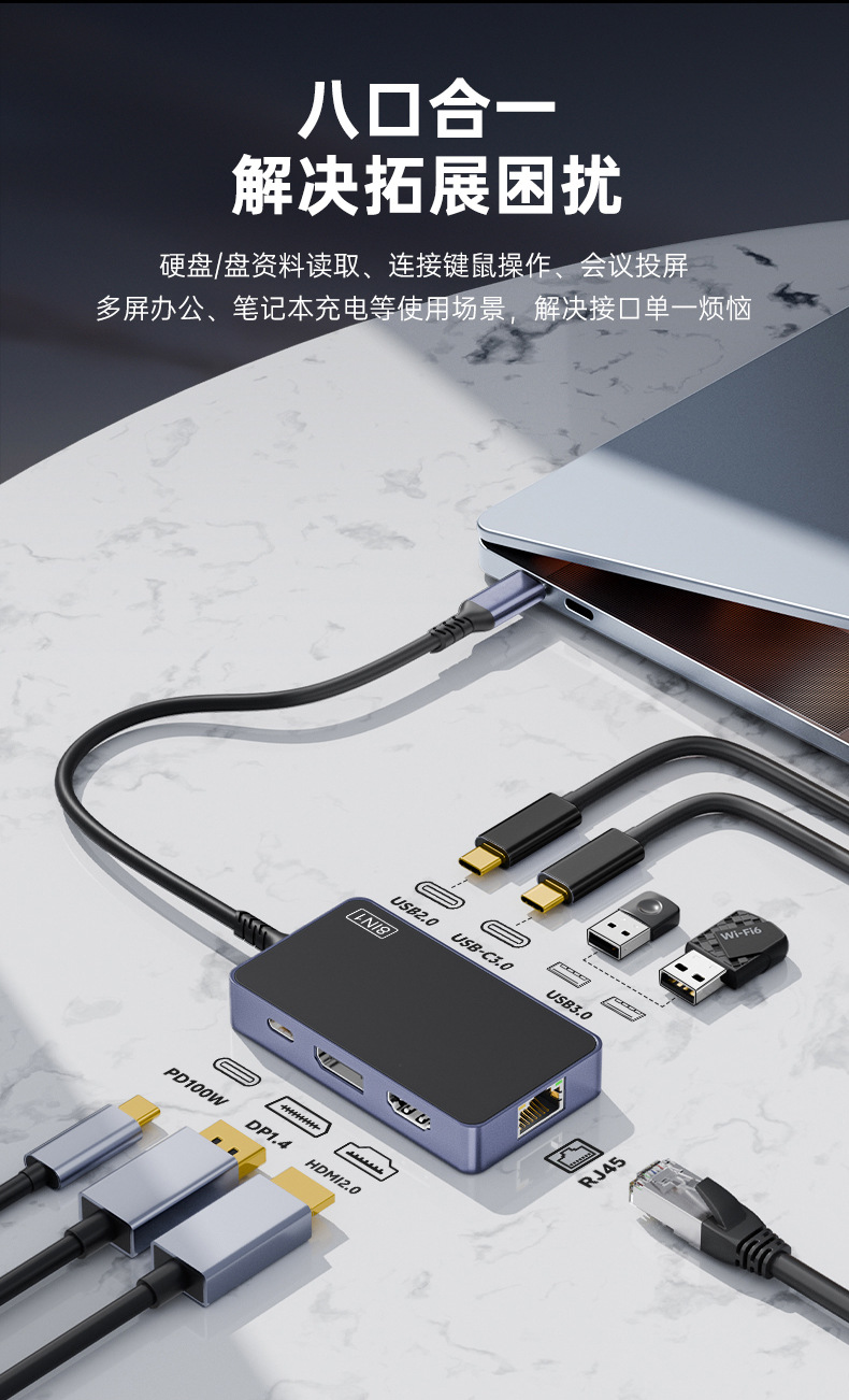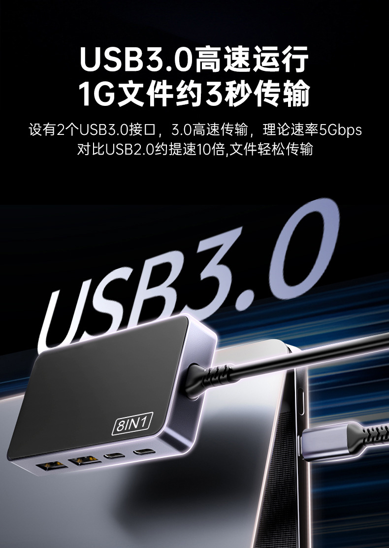 Typec 확장 도크 8-in-1 확장기 USB 분배기 다중 인터페이스 HDMI 네트워크 케이블 변환 어댑터 4K60Hz스토어 가기
