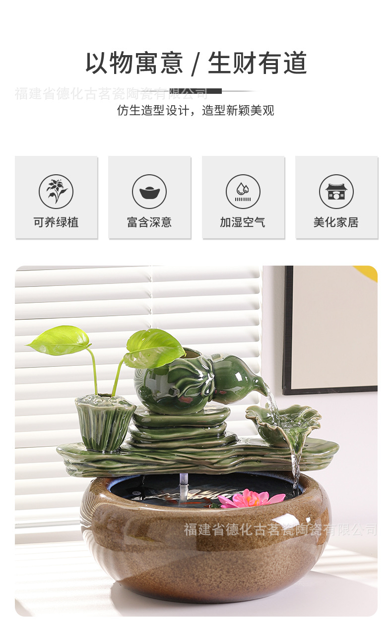 세라믹 흐르는 물 장식품, 순환 수경, 석가산 정원 조경, 거실, 가정용 소형 수조, 필터 장식, 축복
