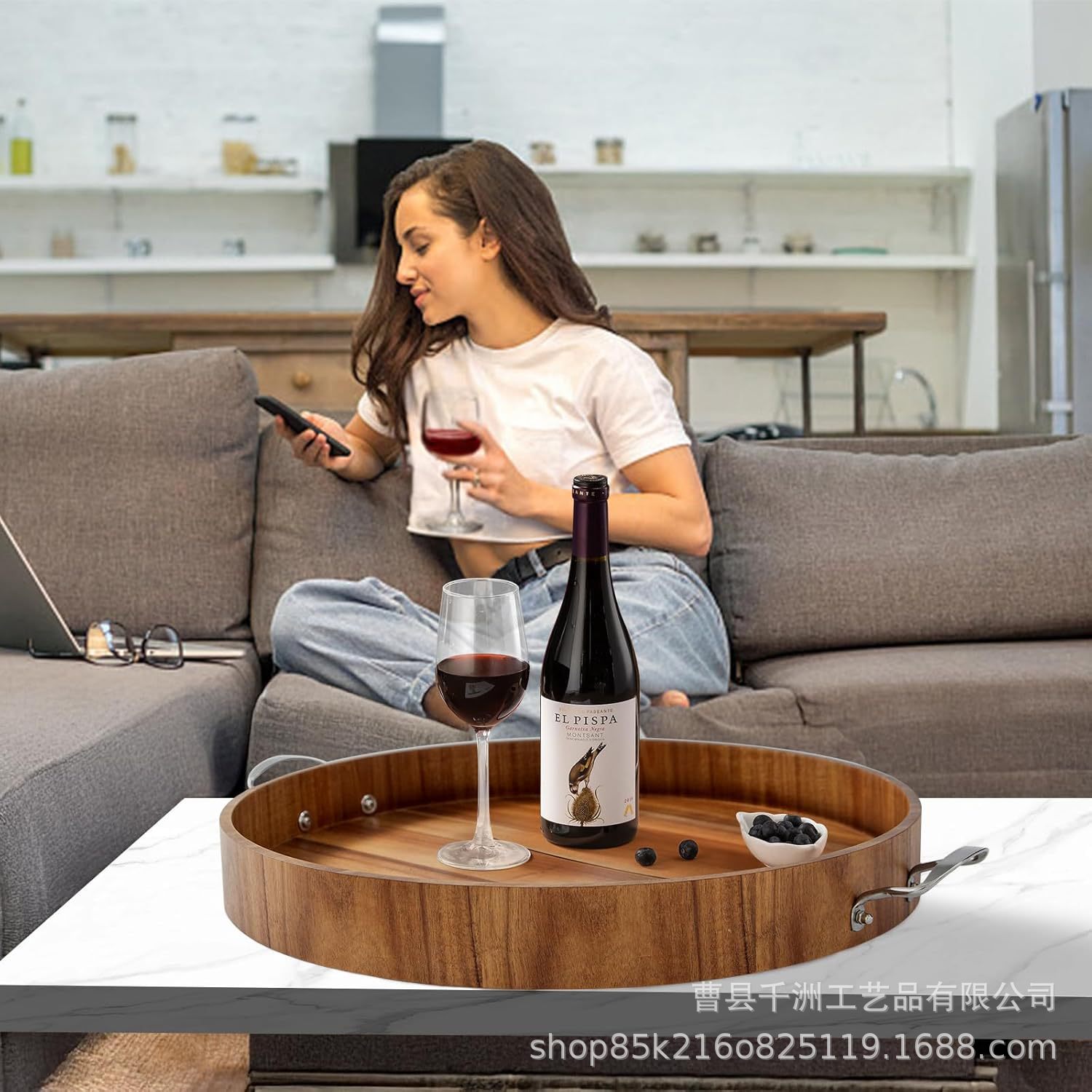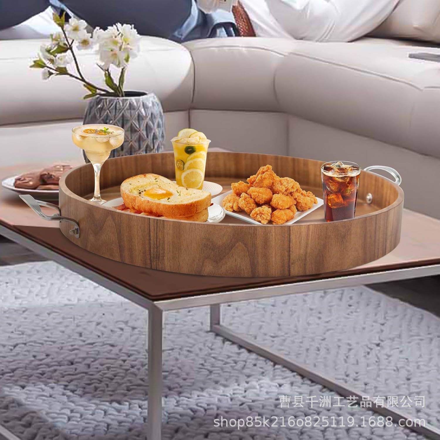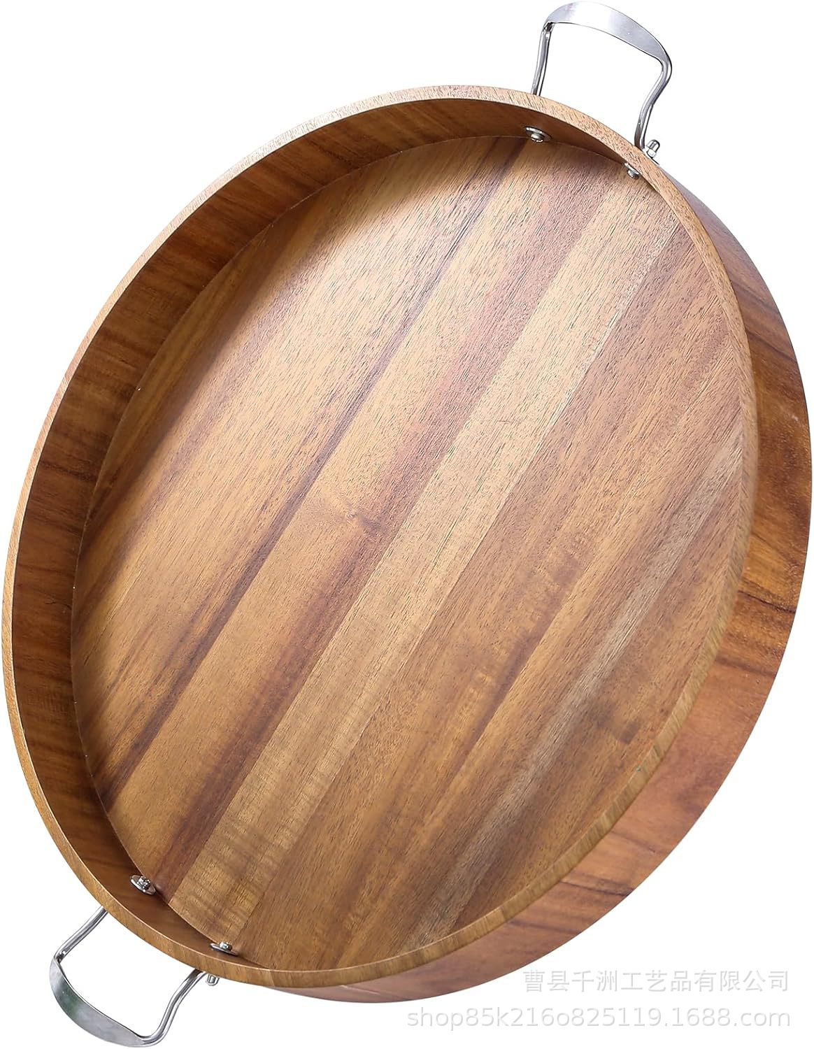 일본식 단단한 나무 가정용 원형 트레이 나무 찻잔 트레이 아침 식사 스낵 보관 식사 트레이 소스 공장은 사용자 정의 가능