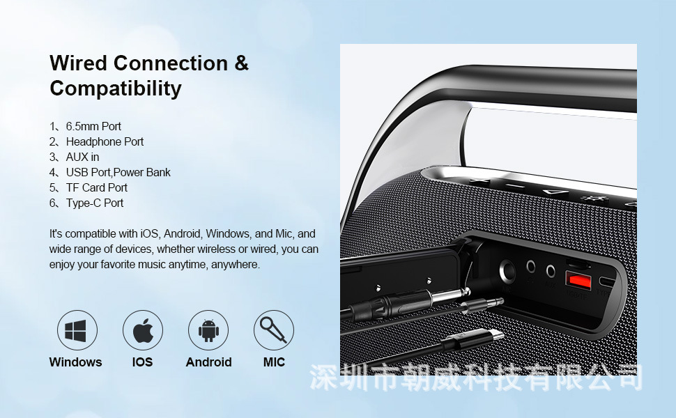 새로운 100W 고출력 블루투스 스피커 야외 방수 및 방진 휴대용 대용량 서브우퍼 K스토어 가기