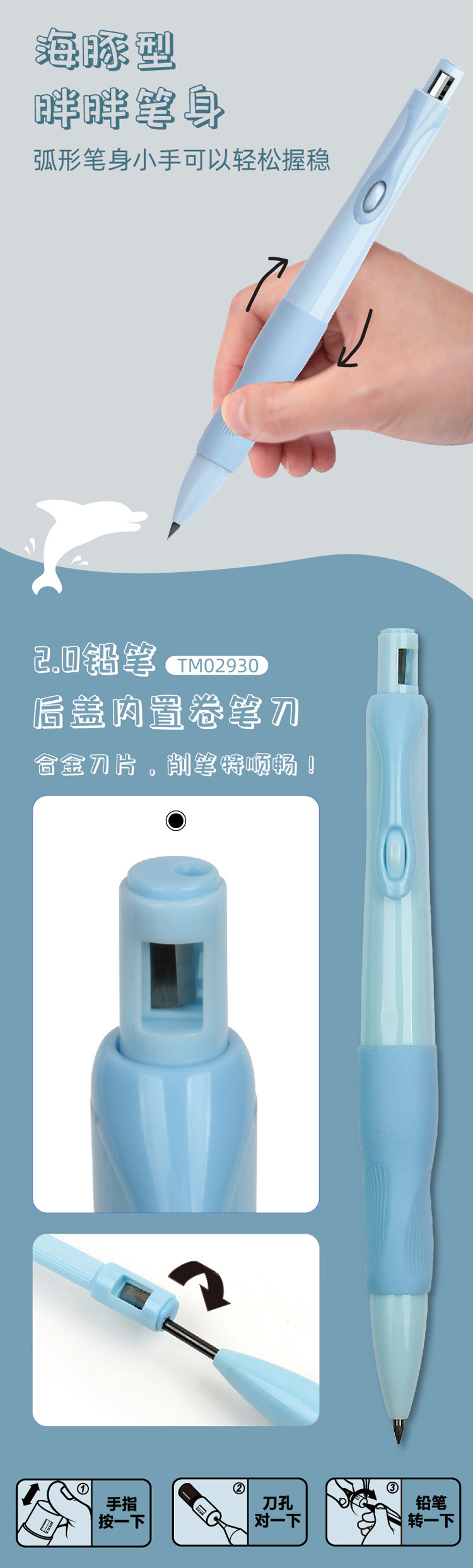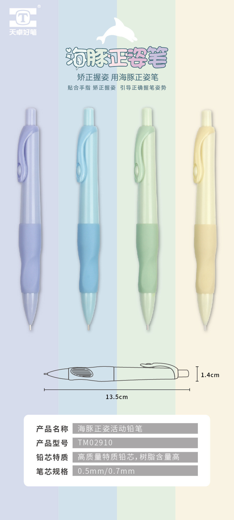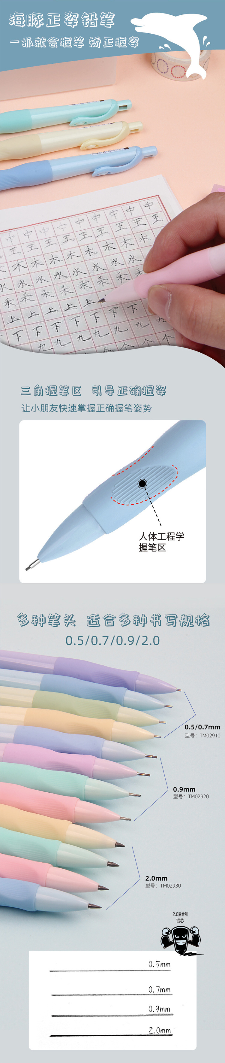 Tianzhuo 포지티브 샤프 펜슬 돌고래 그립 자동 연필 0.5/0.9/2.0mm 학생 프레스 펜