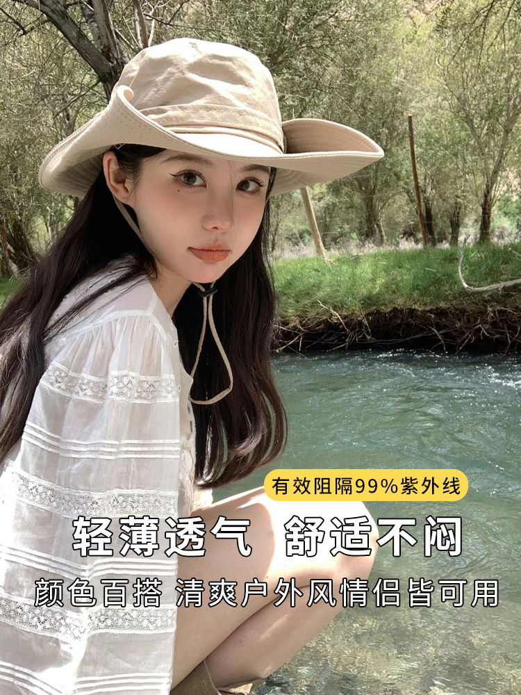 봄과 여름 서양 카우보이 태양 모자 야외 낚시 등산 모자 여성용 Drawstring 어부 모자 남성용 대형 챙 태양 보호 모자스토어 가기