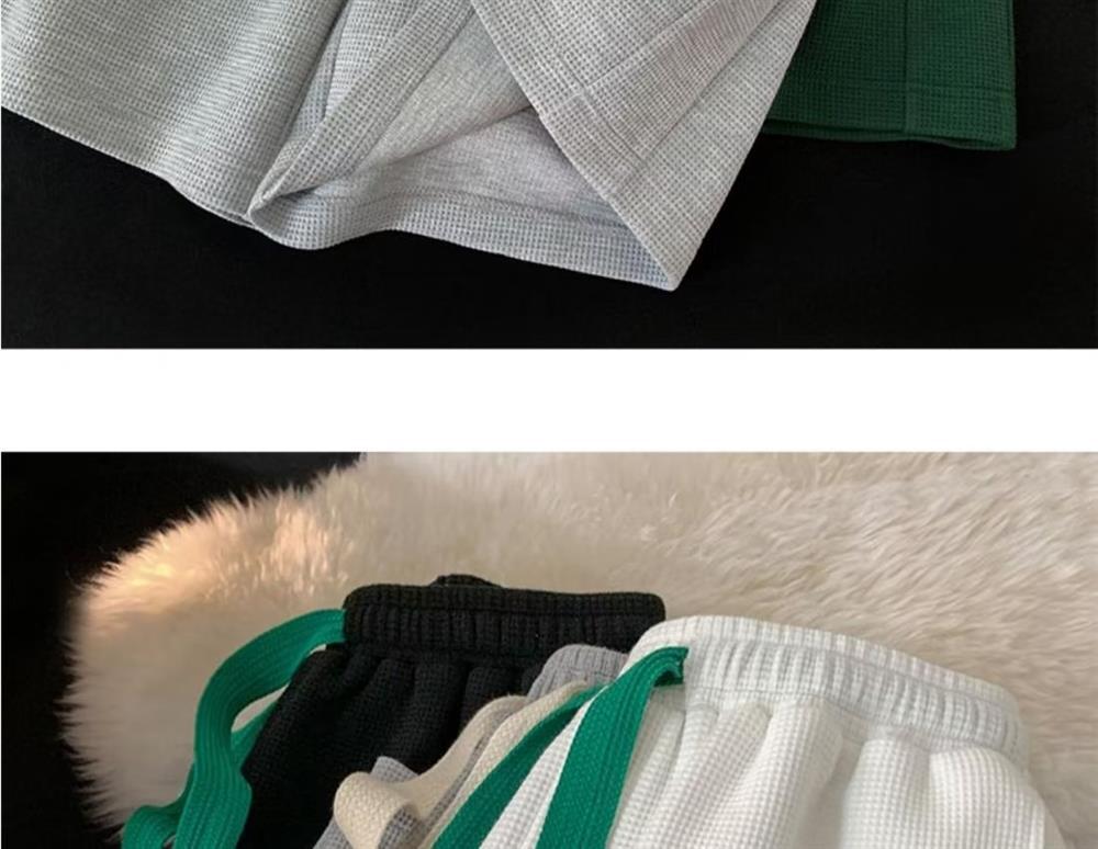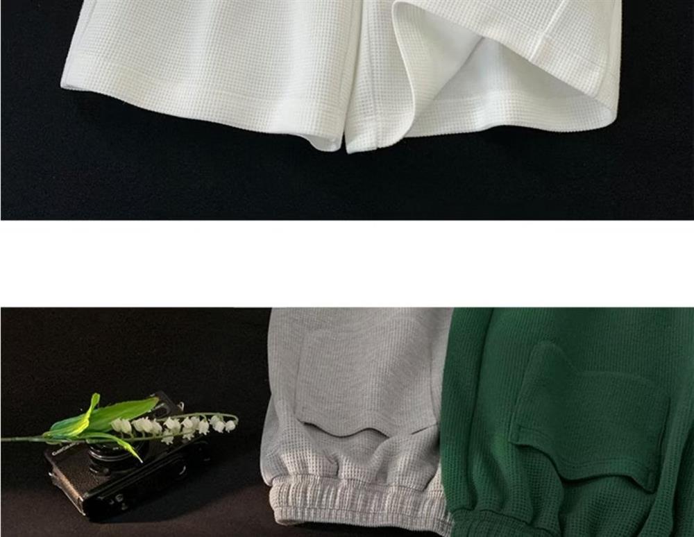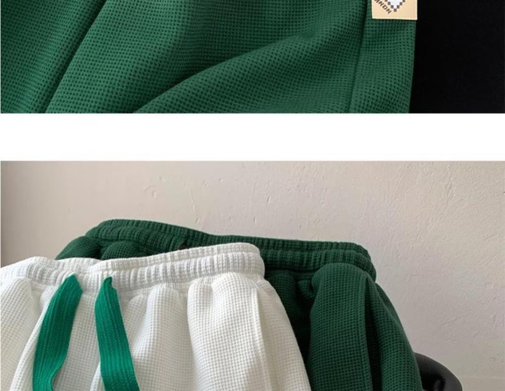 와플 반바지 남성 여름 미국 복고풍 헤비급 트렌디 브랜드 스포츠 쿼터 팬츠 캐주얼 루즈 그린 미드 팬츠