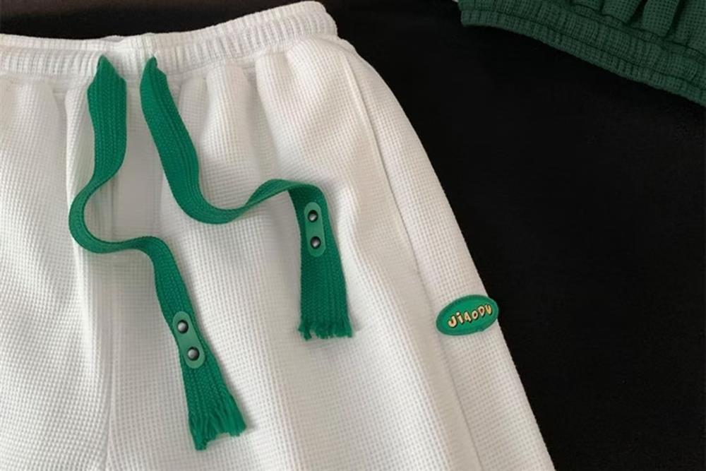 와플 반바지 남성 여름 미국 복고풍 헤비급 트렌디 브랜드 스포츠 쿼터 팬츠 캐주얼 루즈 그린 미드 팬츠스토어 가기