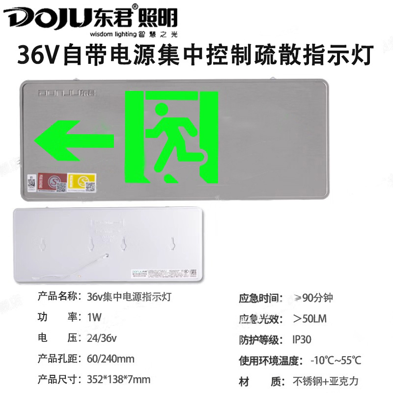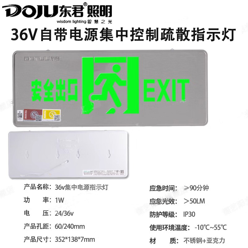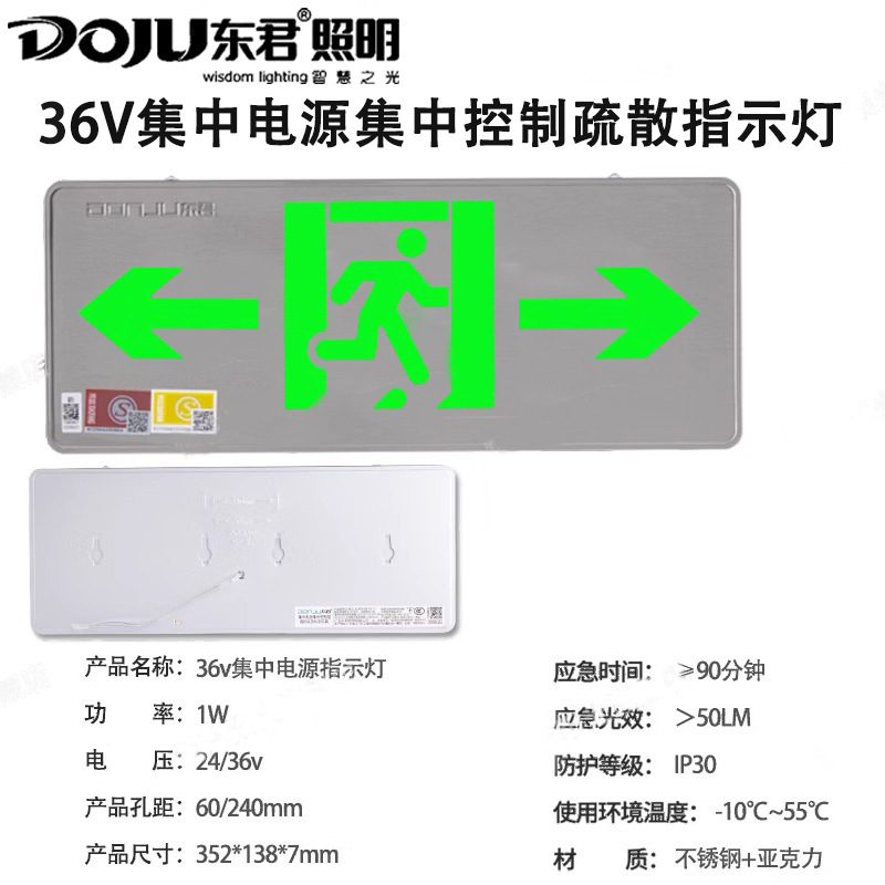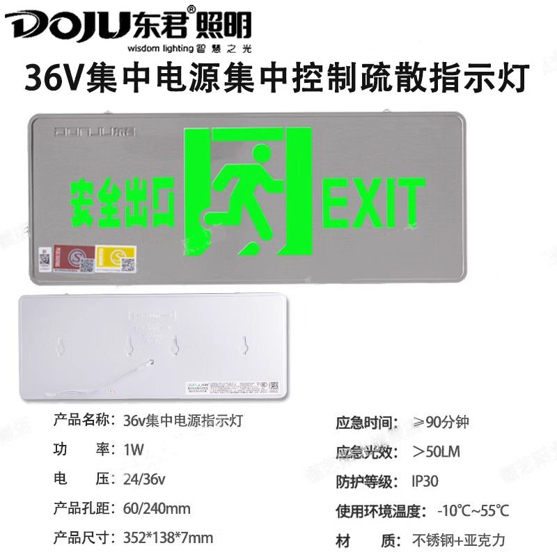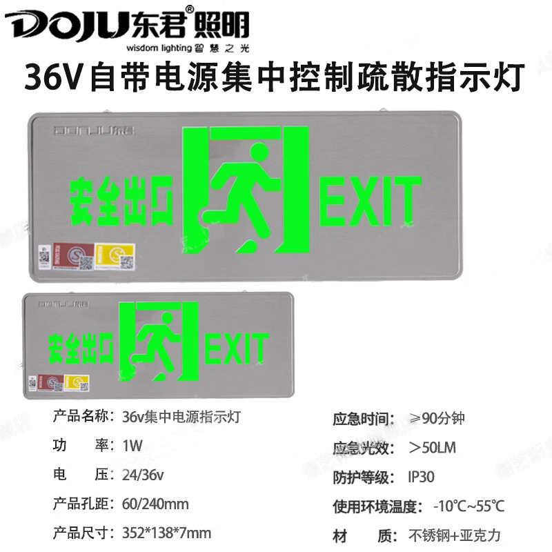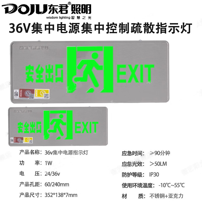 Dongjun 화재 조명 비상 조명 안전 출구 표시기 36V 스테인레스 스틸 통로 대피 출구 표시스토어 가기