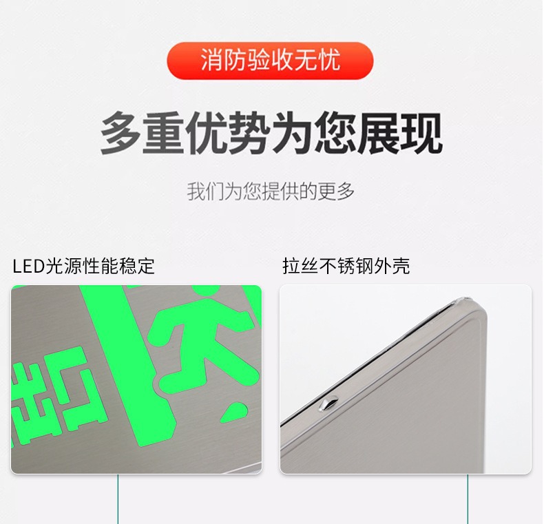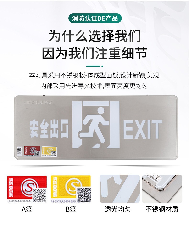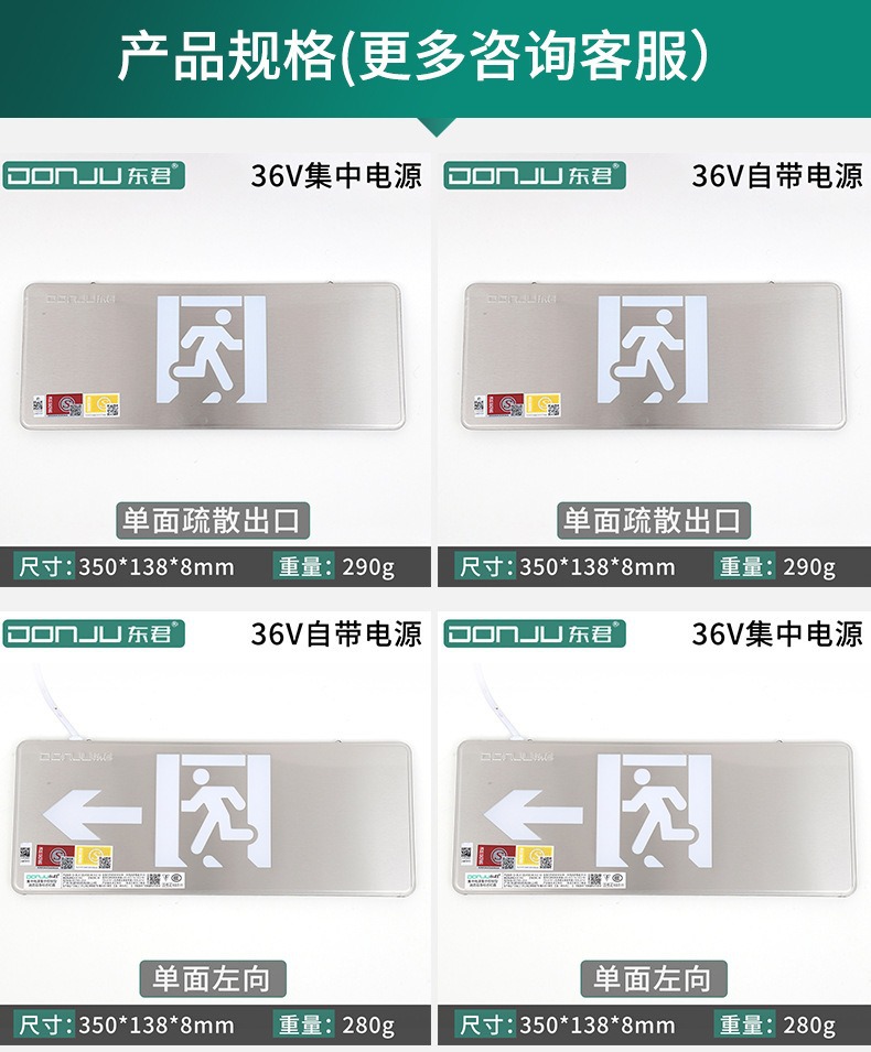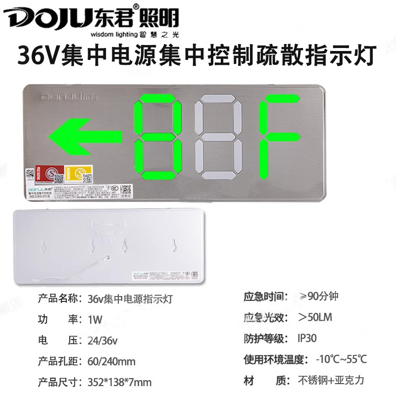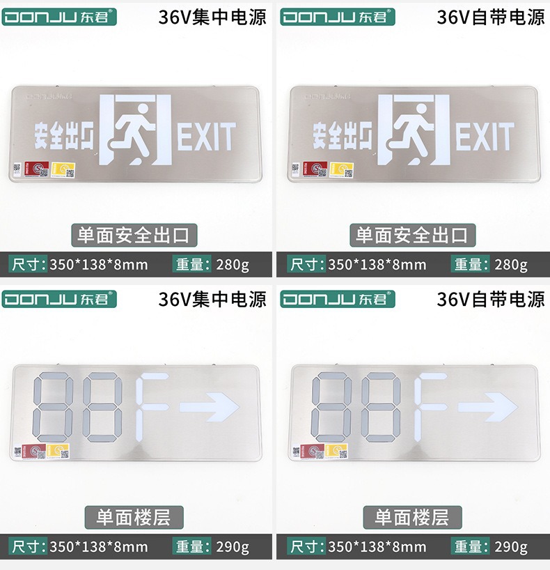 Dongjun 화재 조명 비상 조명 안전 출구 표시기 36V 스테인레스 스틸 통로 대피 출구 표시스토어 가기