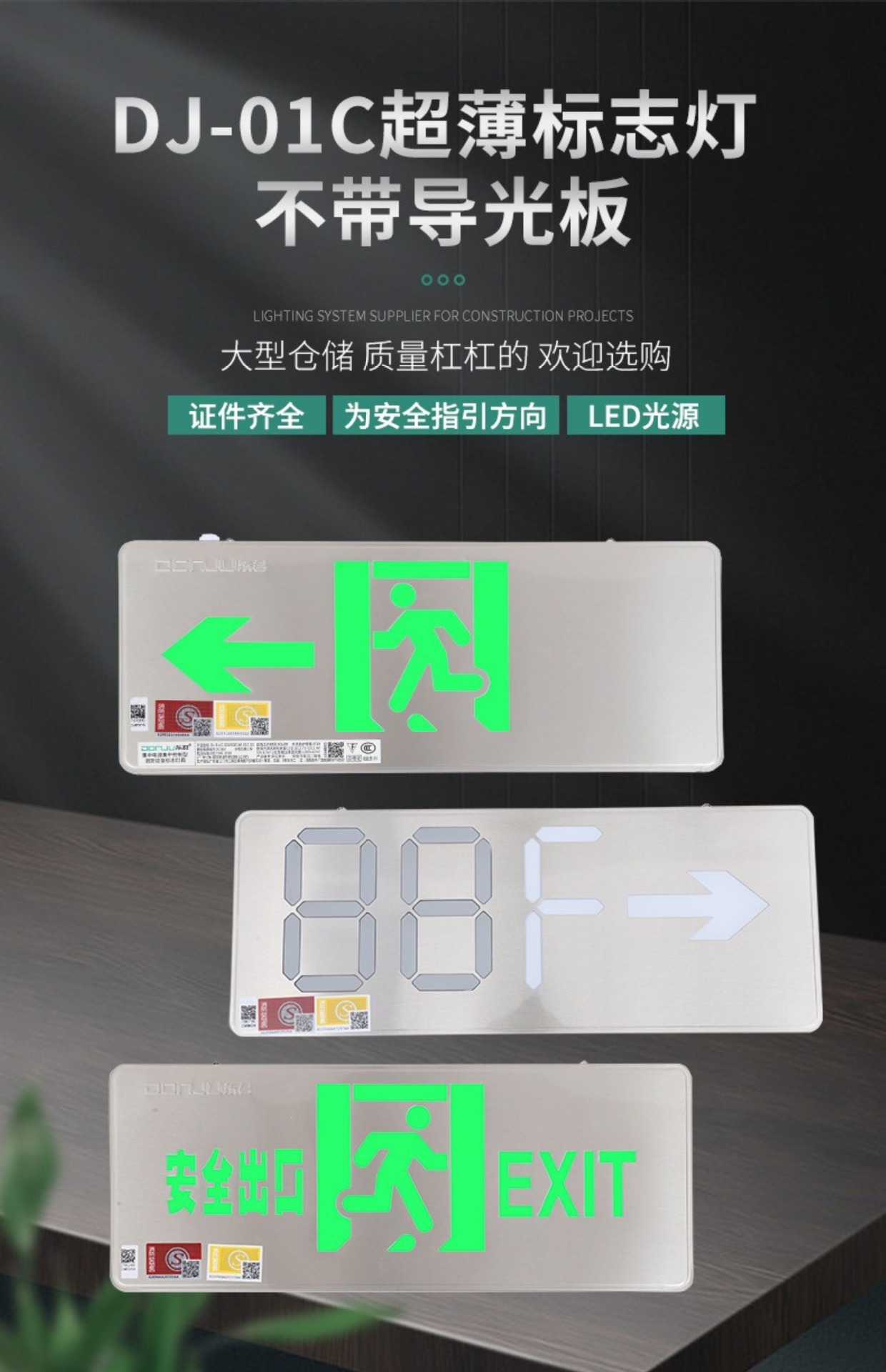 Dongjun 화재 조명 비상 조명 안전 출구 표시기 36V 스테인레스 스틸 통로 대피 출구 표시