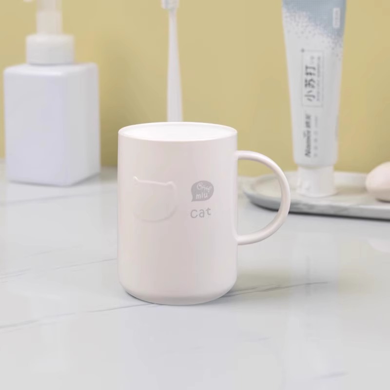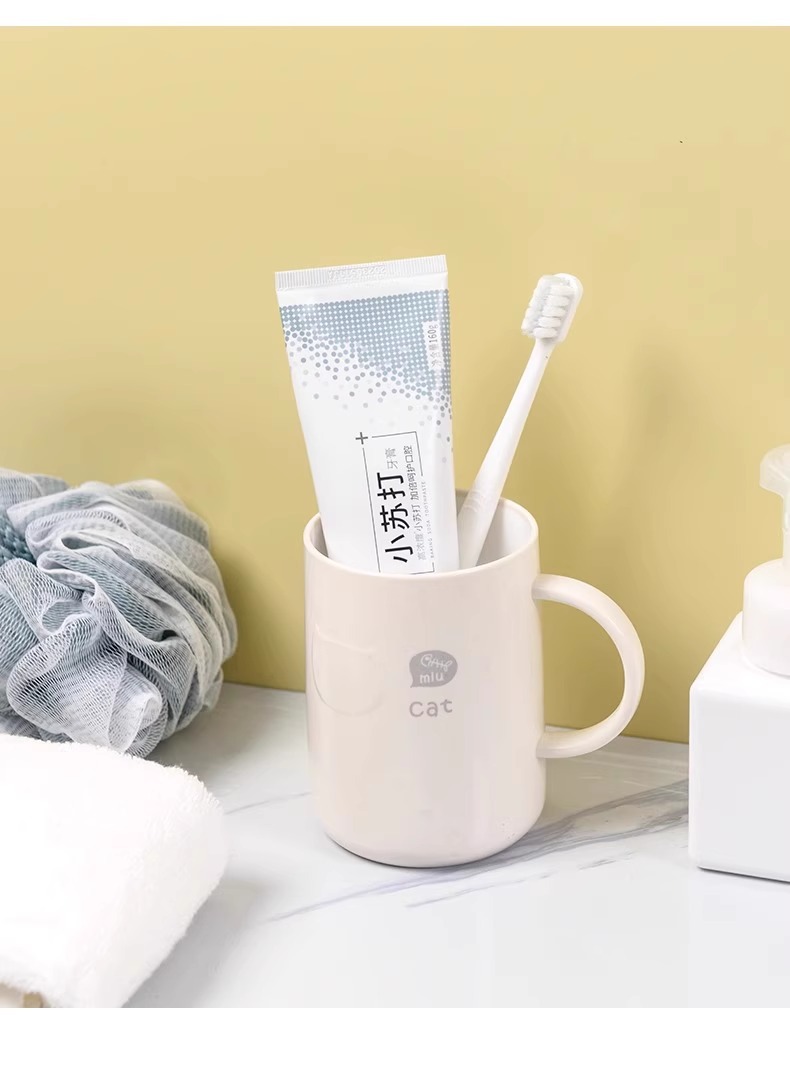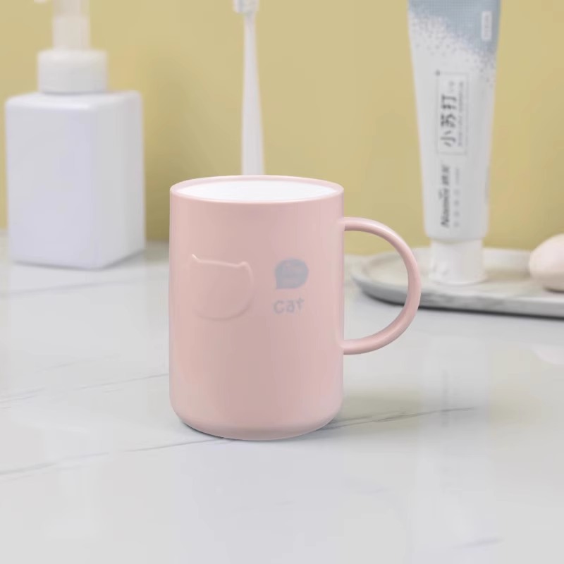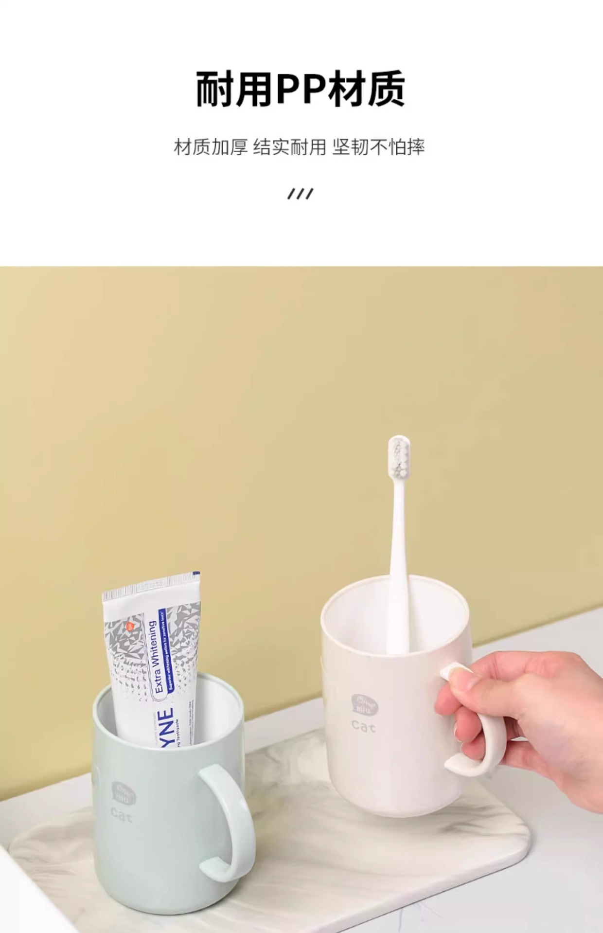 플라스틱 구강 세척제 컵, 간단한 가정용 세척 컵, 커플 세척 컵, 만화 귀여운 두꺼운 칫솔 컵(손잡이 포함)
