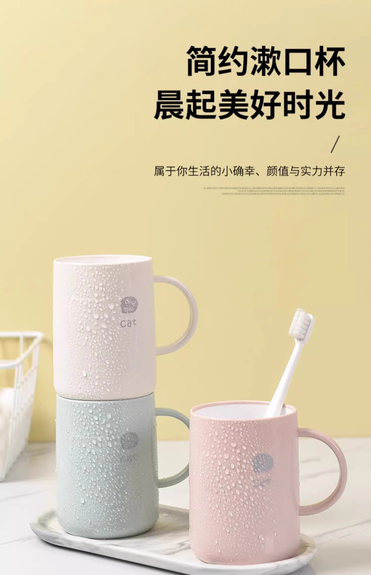 플라스틱 구강 세척제 컵, 간단한 가정용 세척 컵, 커플 세척 컵, 만화 귀여운 두꺼운 칫솔 컵(손잡이 포함)스토어 가기