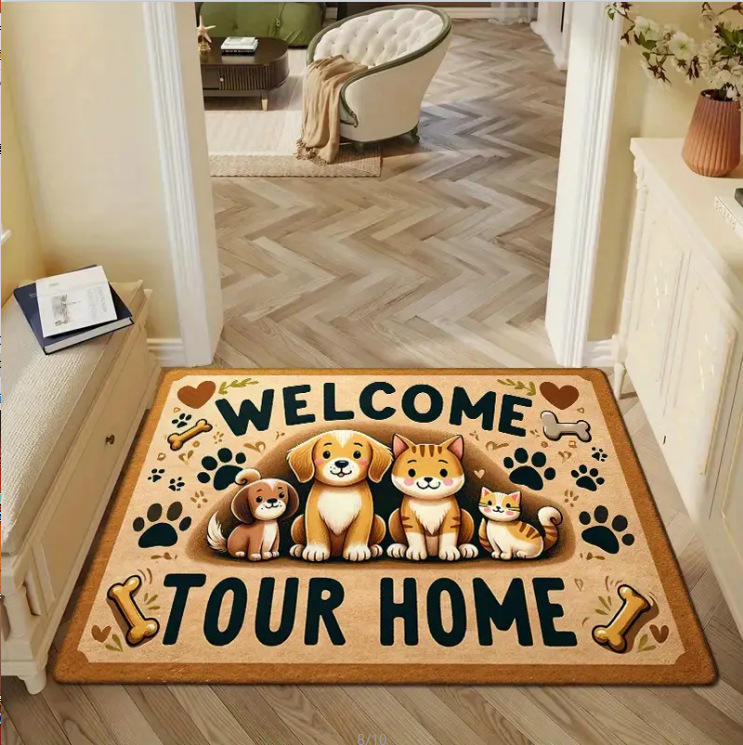 국경 간 만화 개 크리스탈 벨벳 바닥 매트 주방 침실 얼룩 방지 및 관리하기 쉬운 매트 홈 입구 문 장식 카펫스토어 가기