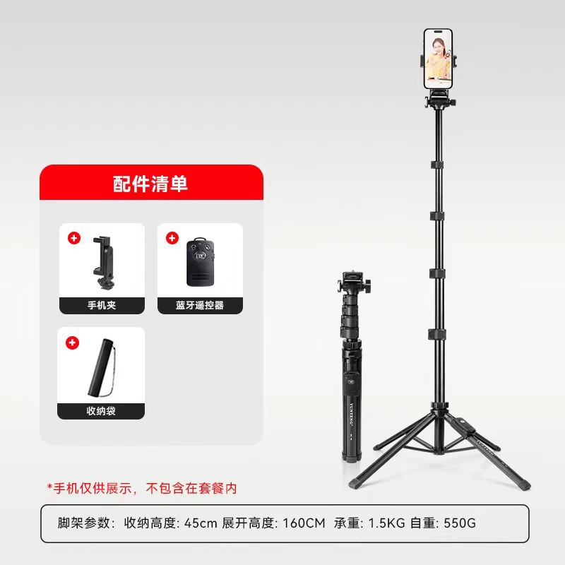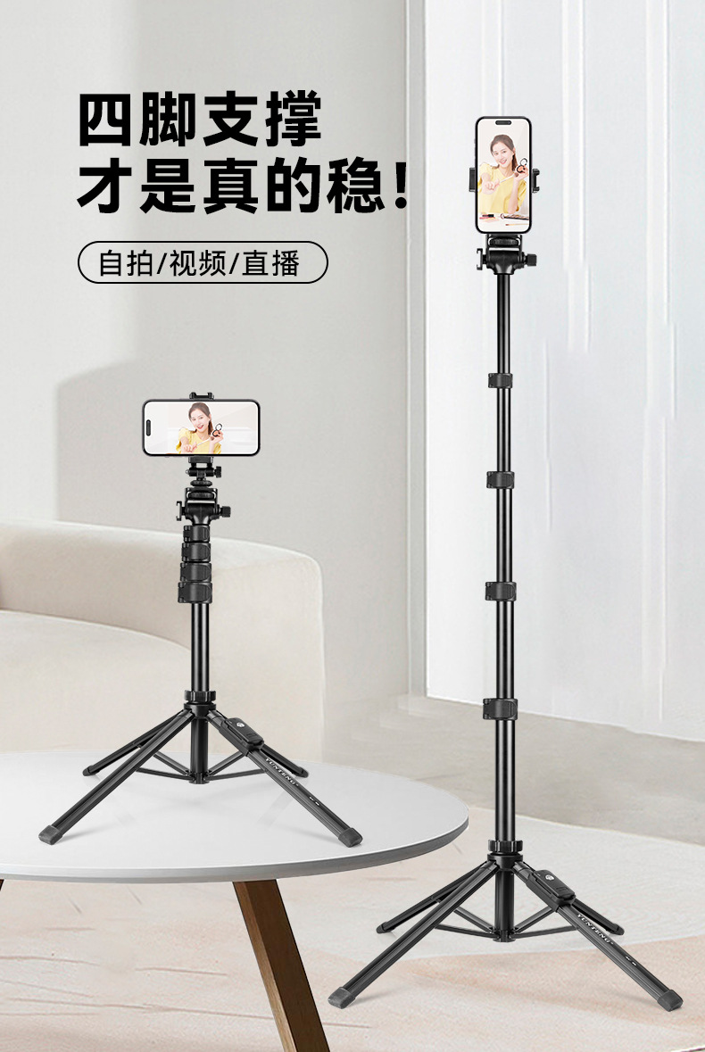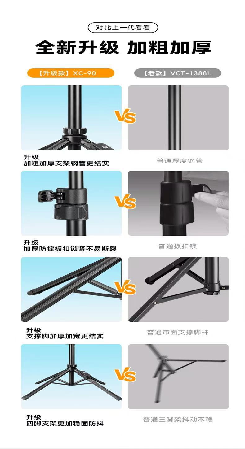 相机脚架vlog视频旅拍支架自拍架热靴手机蓝牙直播四脚支架云腾90