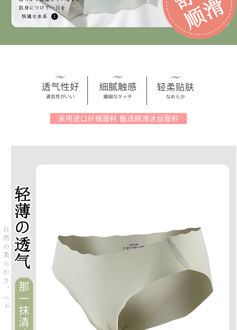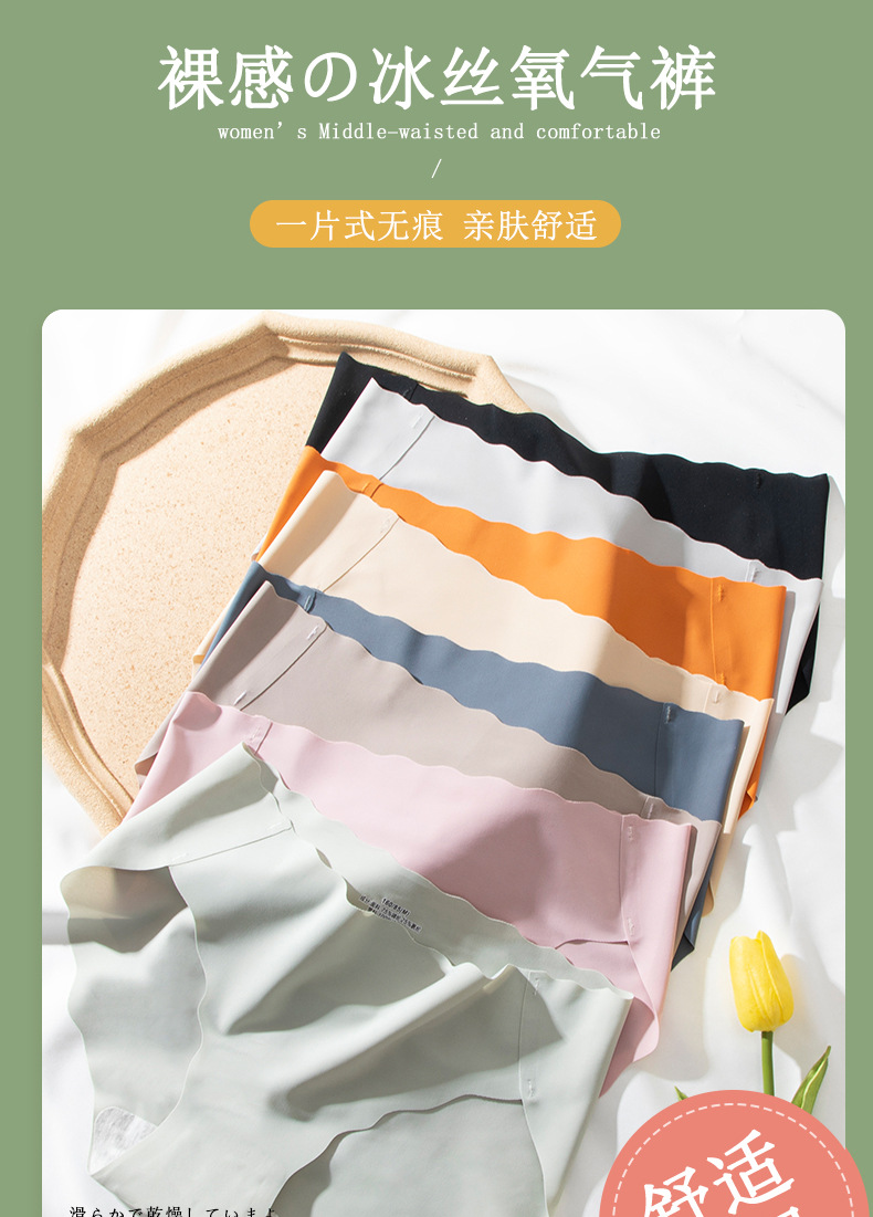여성을위한 원활한 속옷 얼음 실크 여름 얇은 섹시한 통기성 일본 소녀 순수 코튼 항균 가랑이 중간 허리 팬티