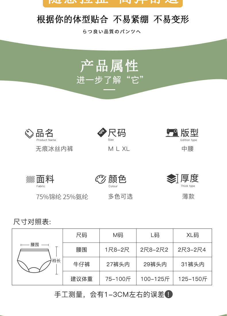 여성을위한 원활한 속옷 얼음 실크 여름 얇은 섹시한 통기성 일본 소녀 순수 코튼 항균 가랑이 중간 허리 팬티스토어 가기