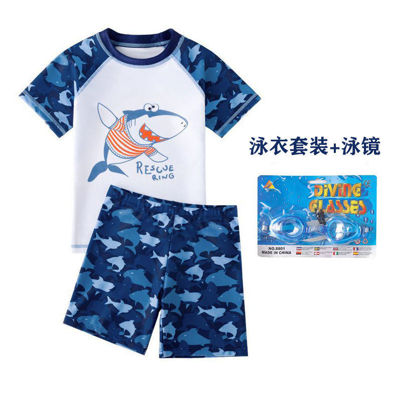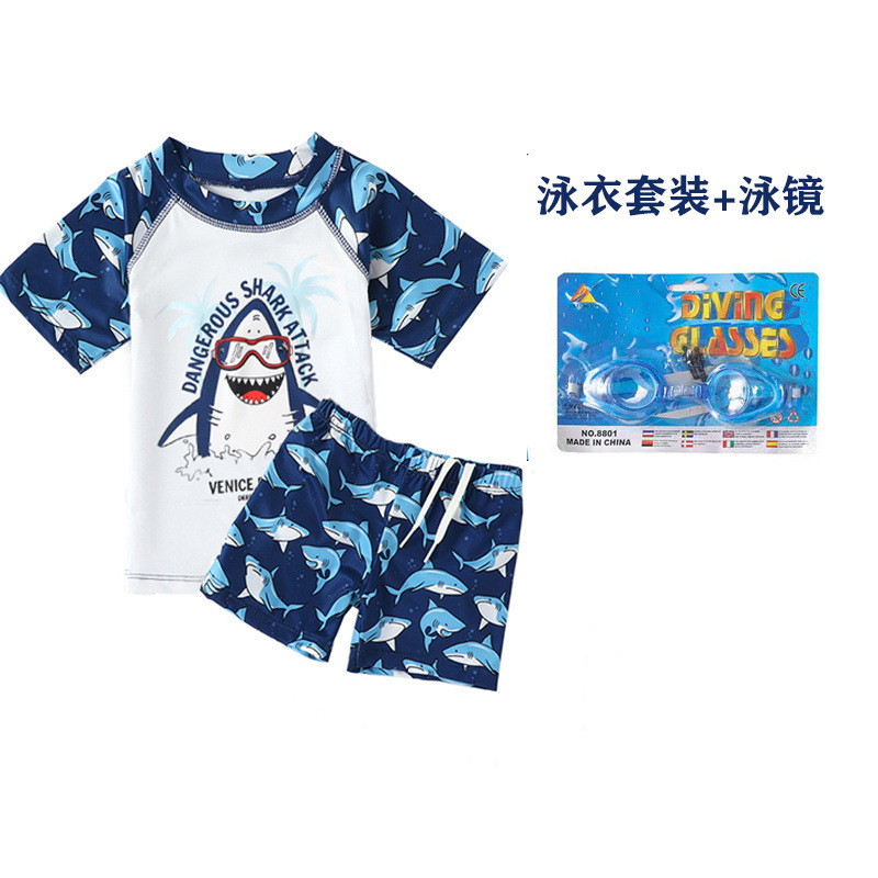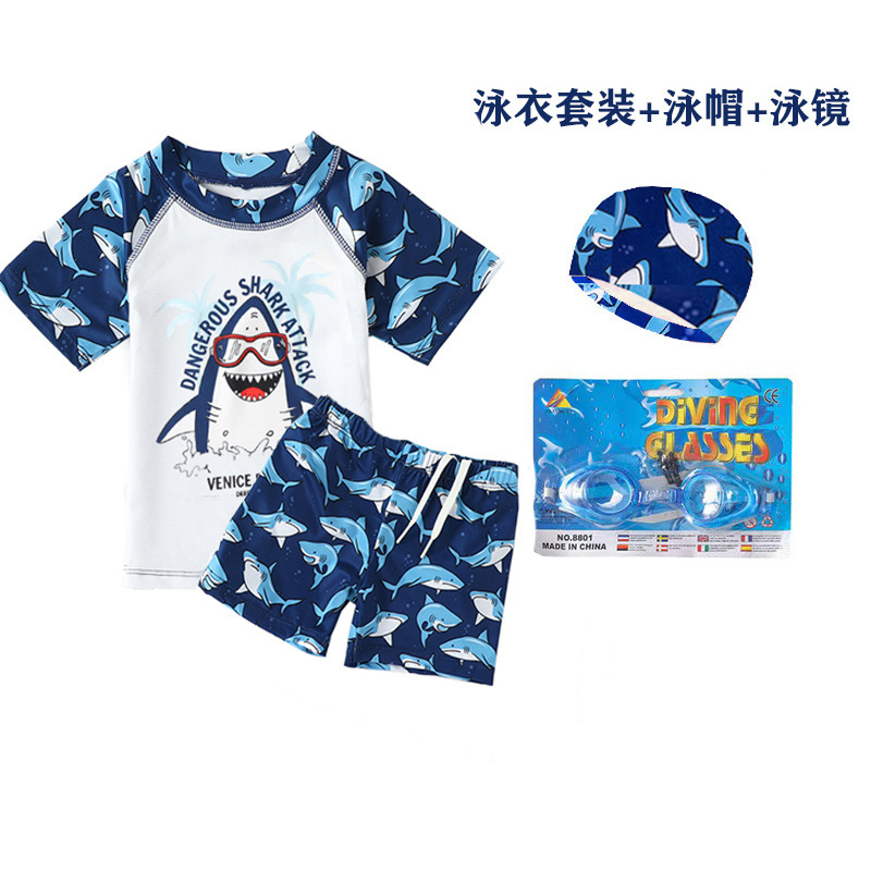 • 그레이트 화이트 샤크 투피스 세트 + 수영모 + 수영 고글
