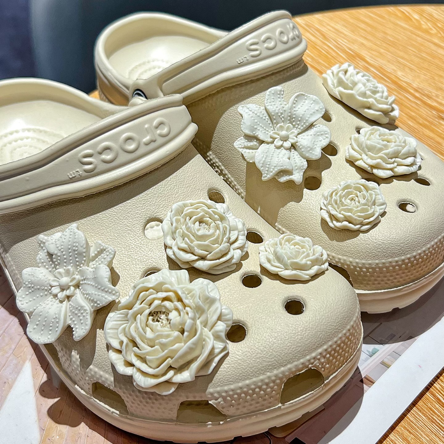 Croc 신발 액세서리, 신발 버클, 고급 입체 동백 장식, 탈부착 및 도매 신발 버클스토어 가기