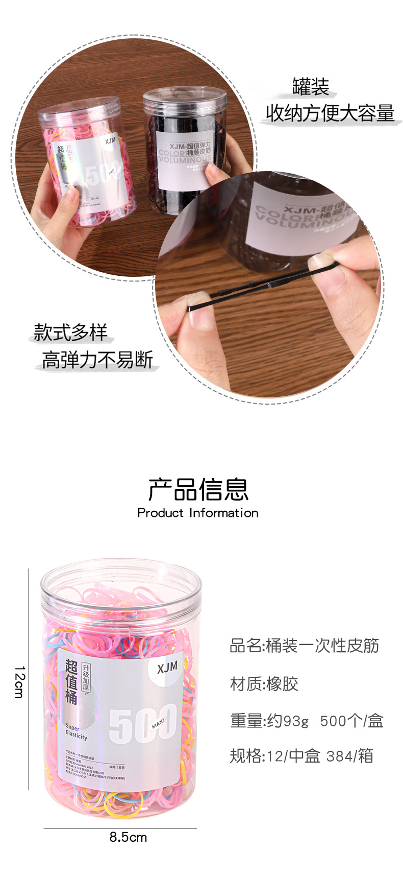 어린이와 성인을 위한 검정색의 고탄성과 내구성이 뛰어난 일회용 고무줄 머리끈