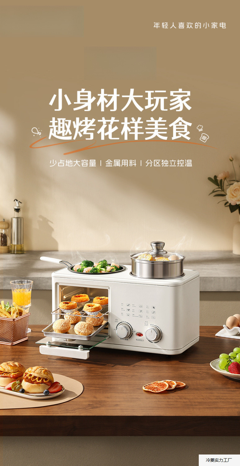 새로운 게으른 4-in-one 아침 식사 기계 가정용 다기능 스테이크 튀김 토스트 튀김 찜 냄비 소형 오븐