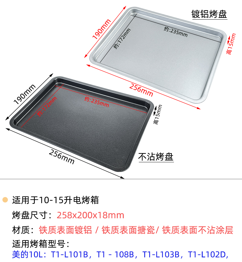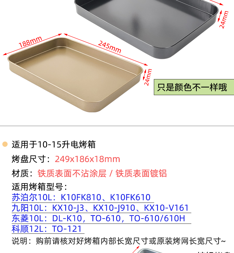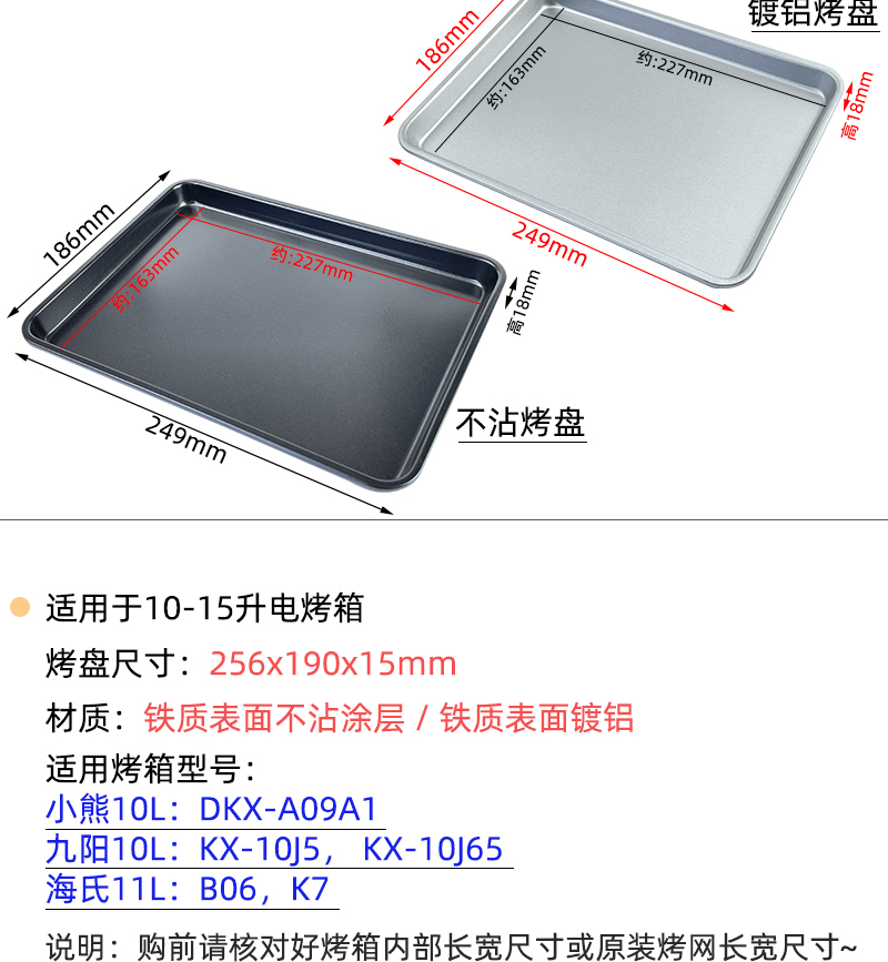 • 258*200*18mm 에나멜 베이킹 팬