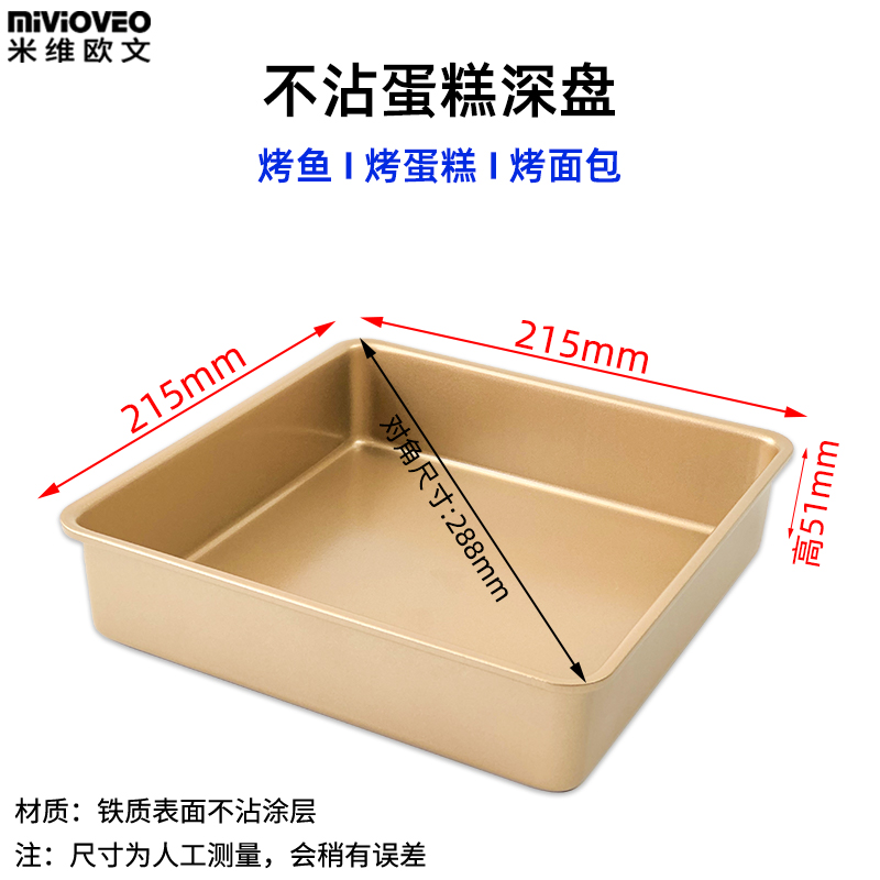 • 215x215x51mm 황금색 붙지 않는 깊은 베이킹 팬