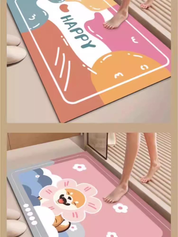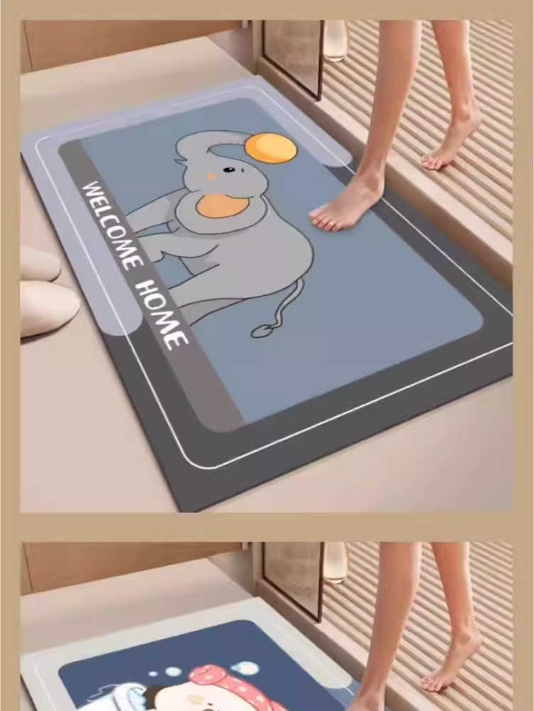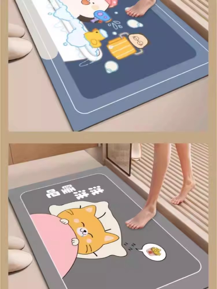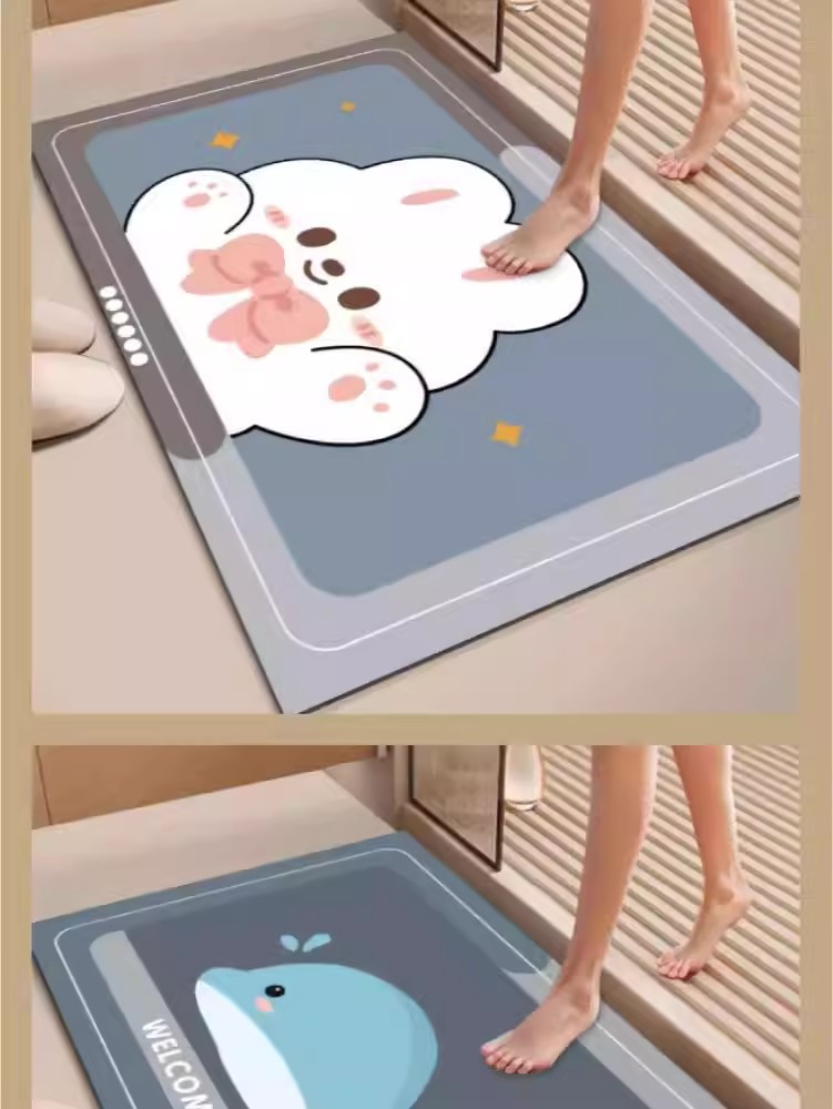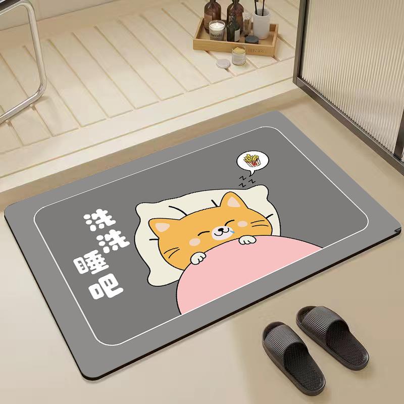 가정용 욕실 및 화장실을 위한 만화 귀여운 새 규조토 진흙 바닥 매트 미끄럼 방지, 흡수성, 속건성 및 관리가 쉬운 바닥 매트스토어 가기
