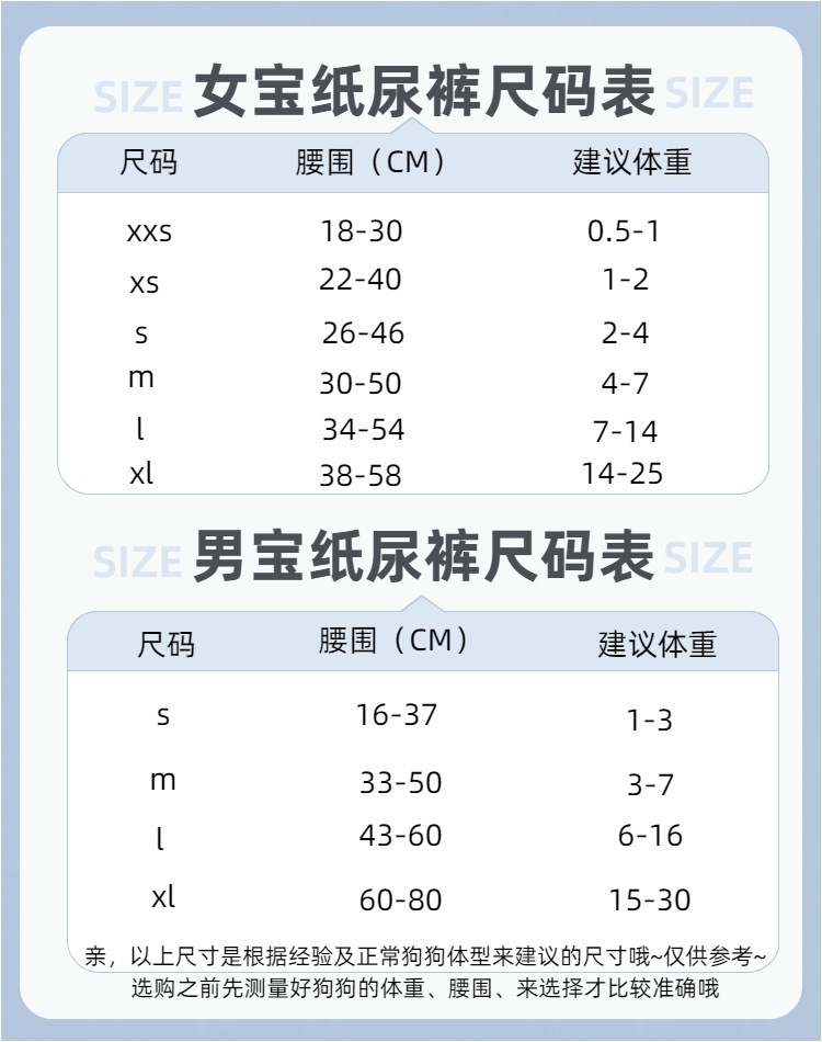 • 암컷 강아지 사이즈 XS(1~2kg 권장) 50정