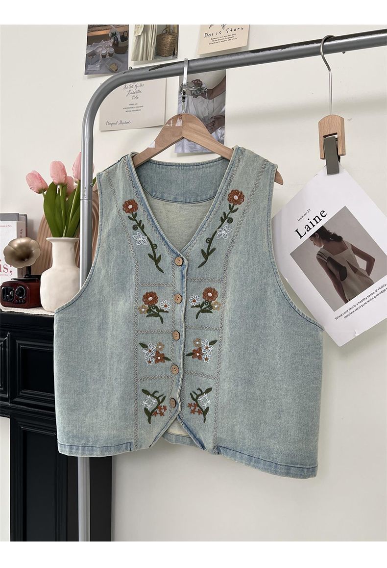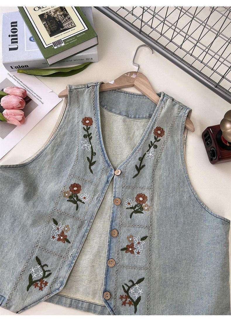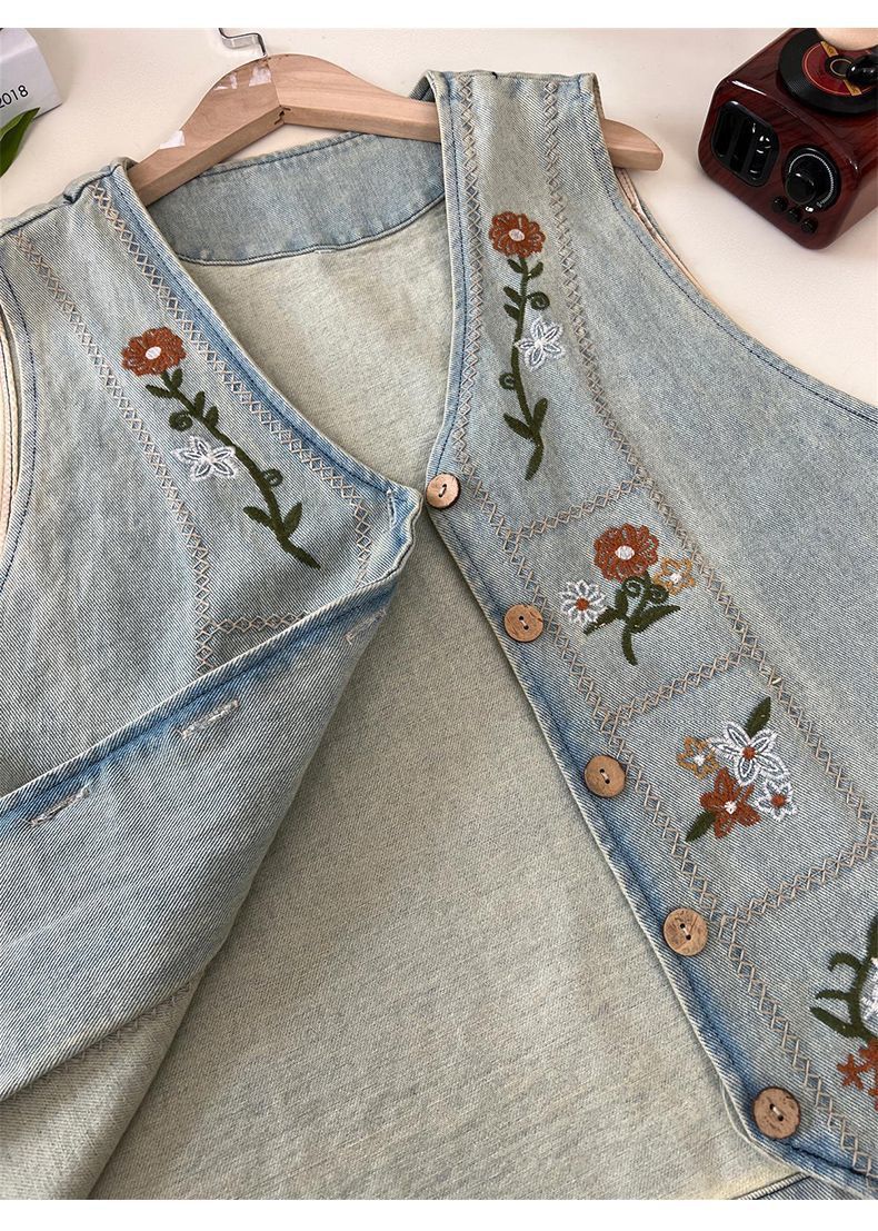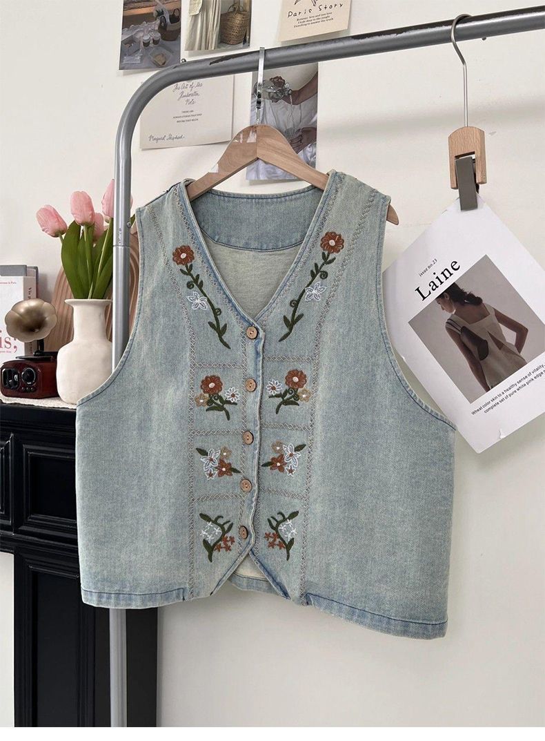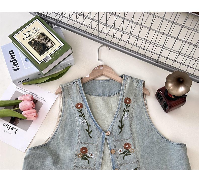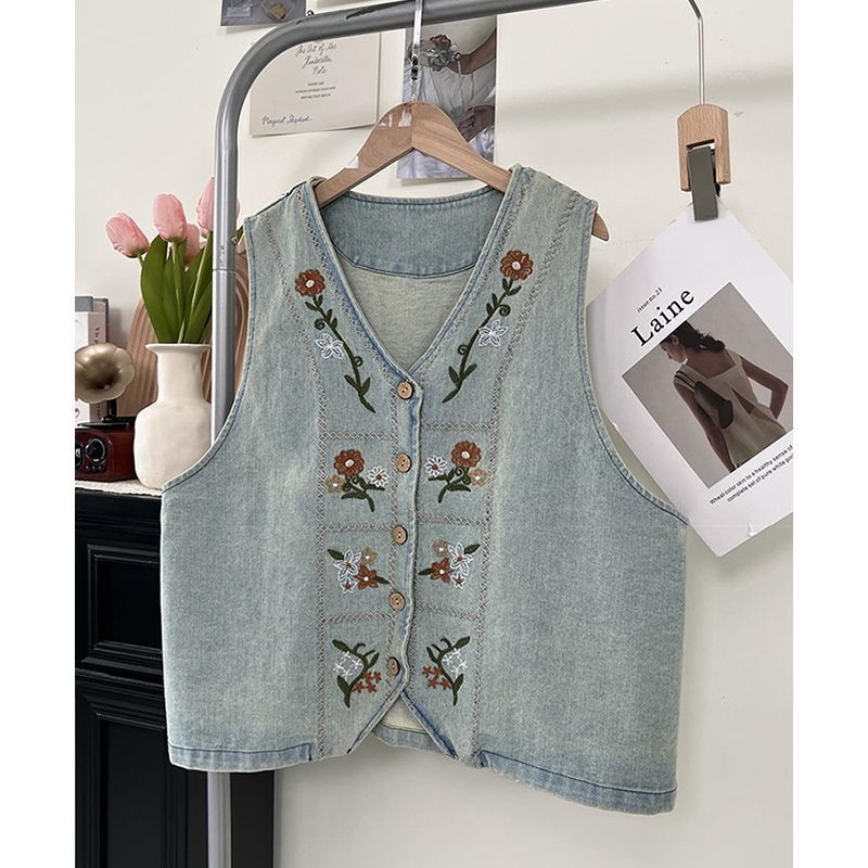 [재고 있음] 자수 민소매 복고풍 재킷 조끼 드레스 여름 새 스타일 2025 여성 조끼 느슨한 얇은 드레스스토어 가기
