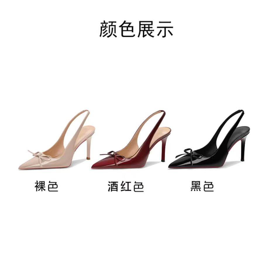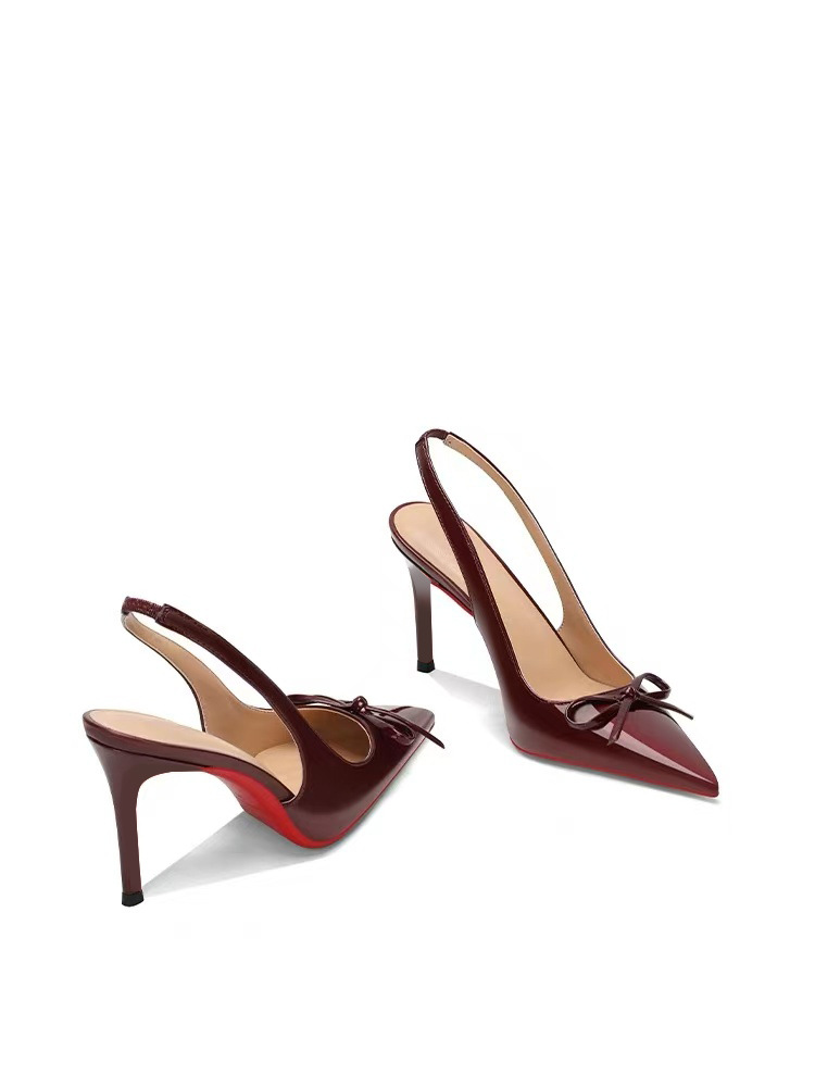 여성을위한 부르고뉴 하이힐 2025 새로운 스타일 뾰족한 발가락 나비 초극세 힐 펌프 신발 여성을위한 섹시한 발가락 샌들스토어 가기