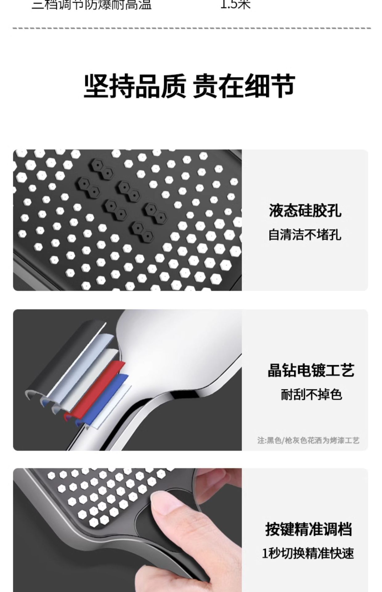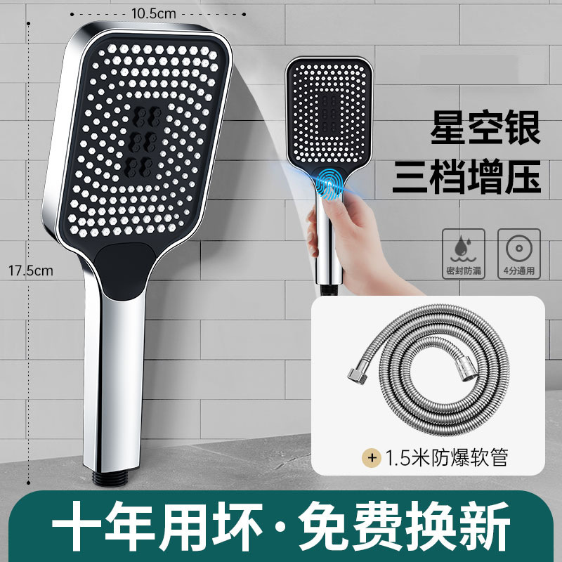 • [전기도금 실버세트3] 부스터 샤워기 + 암호화 호스 1.5m개 + 브라켓