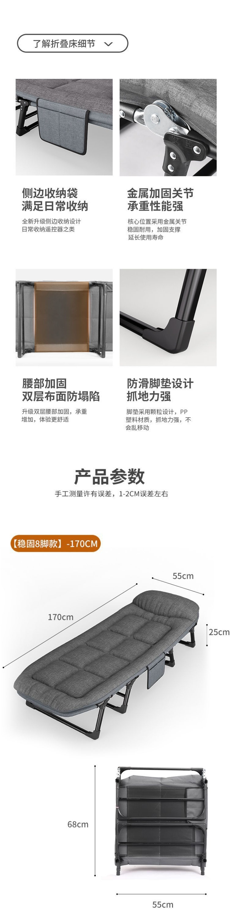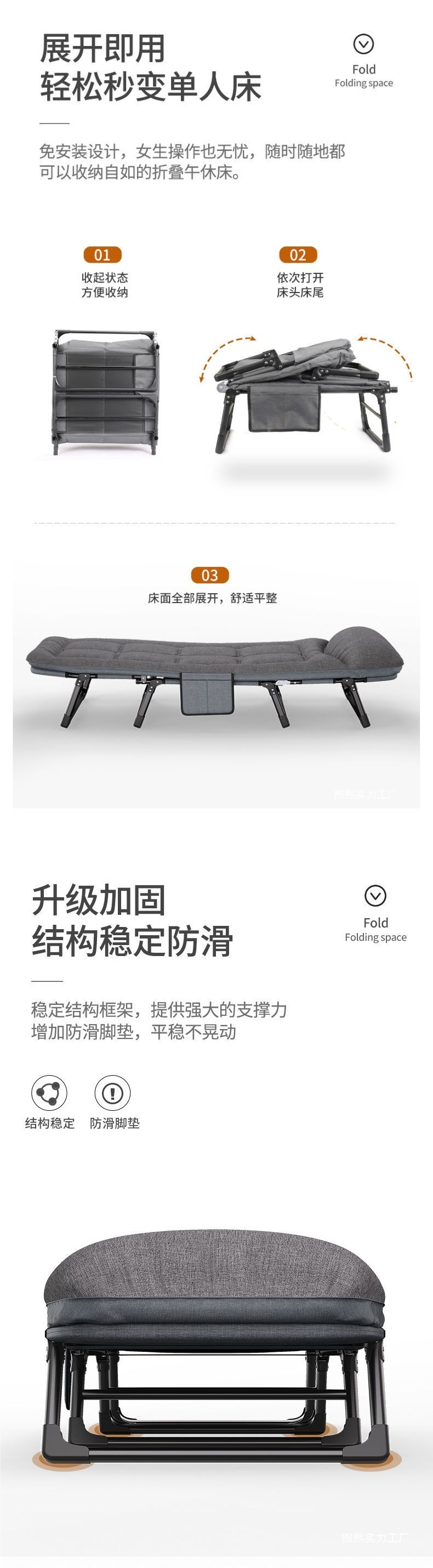 사무실 점심시간 접이식 침대 안락의자 낮잠 싱글 간이 캠프 침대 야간 근무 병원 동반 침대 금속스토어 가기
