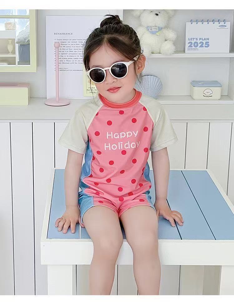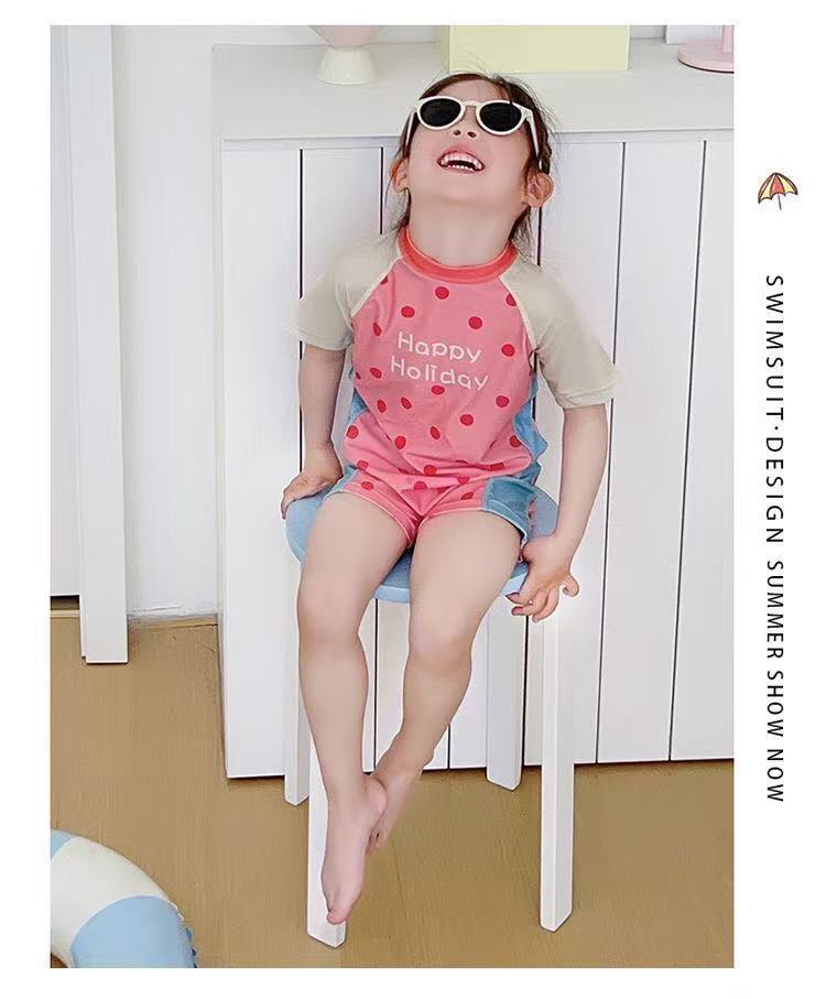 어린이와 중년 어린이를 위한 새로운 아동 수영복, 귀여운 소녀 원피스 수영복, 긴팔 자외선 차단제, 속건성 온천 해변 수영복