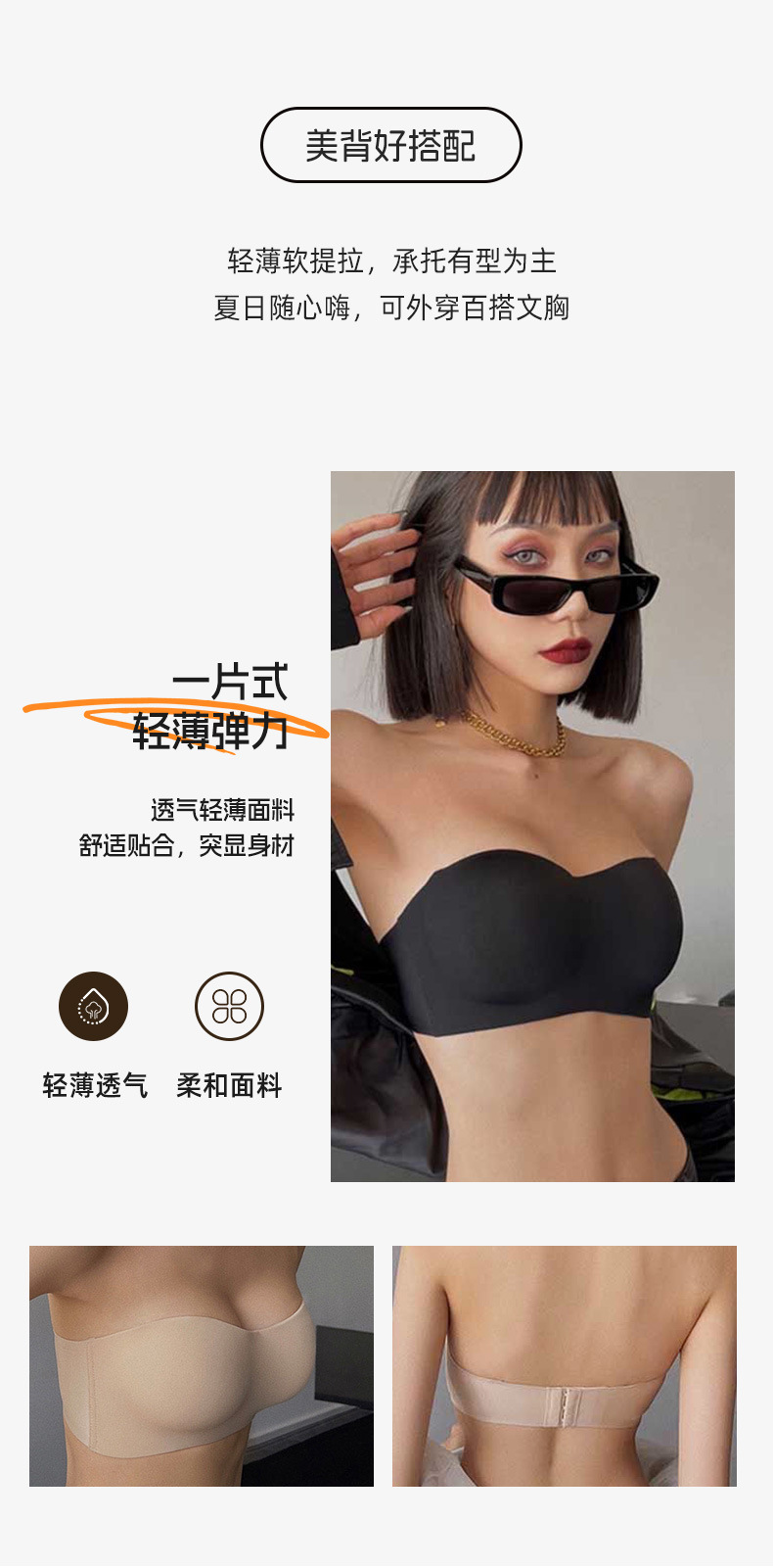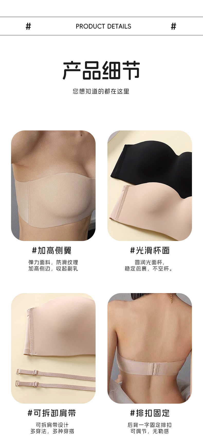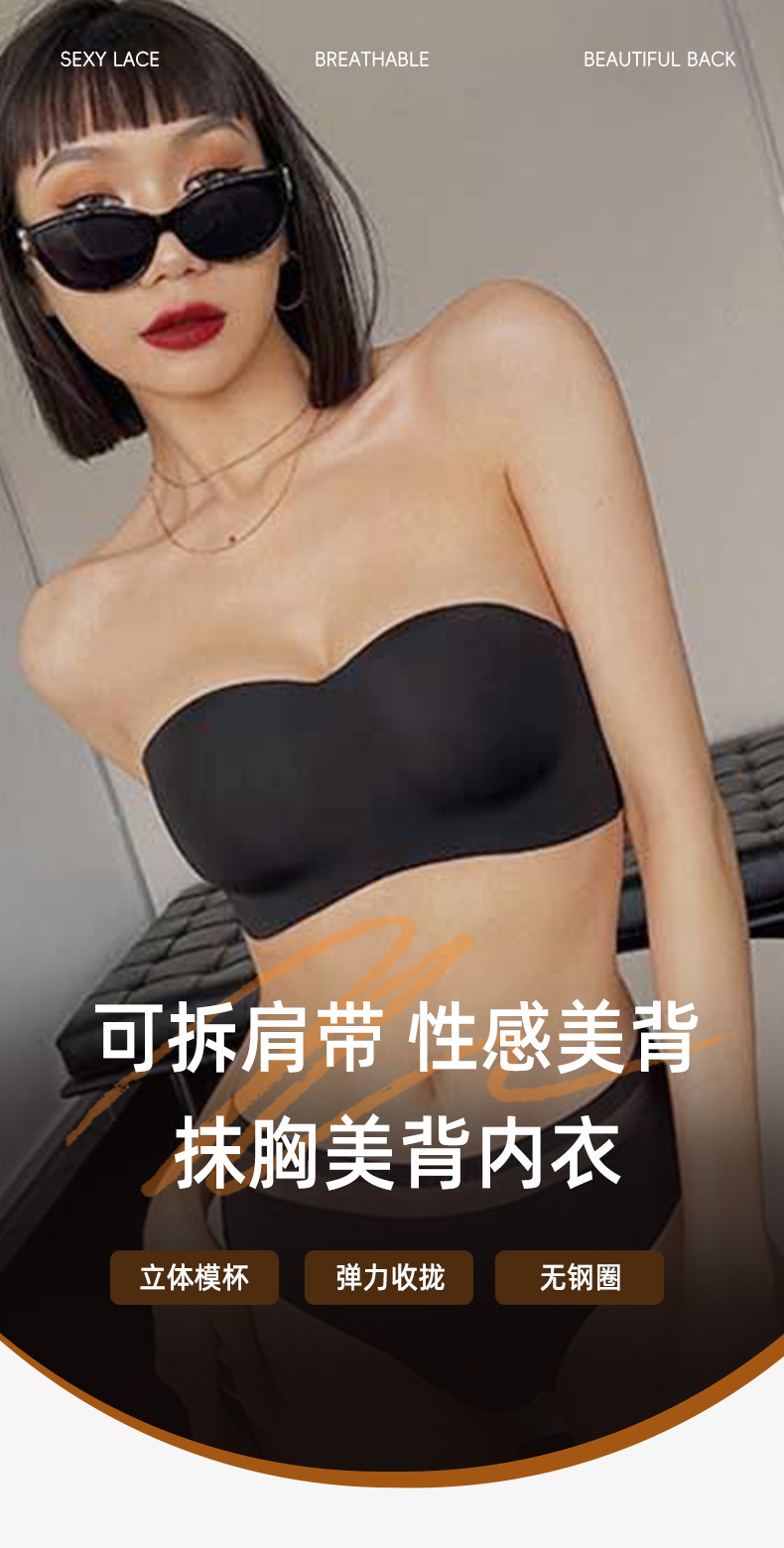 여성용 탈착식 어깨끈 튜브탑, 미끄럼 방지 측면 푸쉬업, 심리스 보이지 않는 속옷, 섹시한 아름다운 등, 와이어 프리 브라스토어 가기