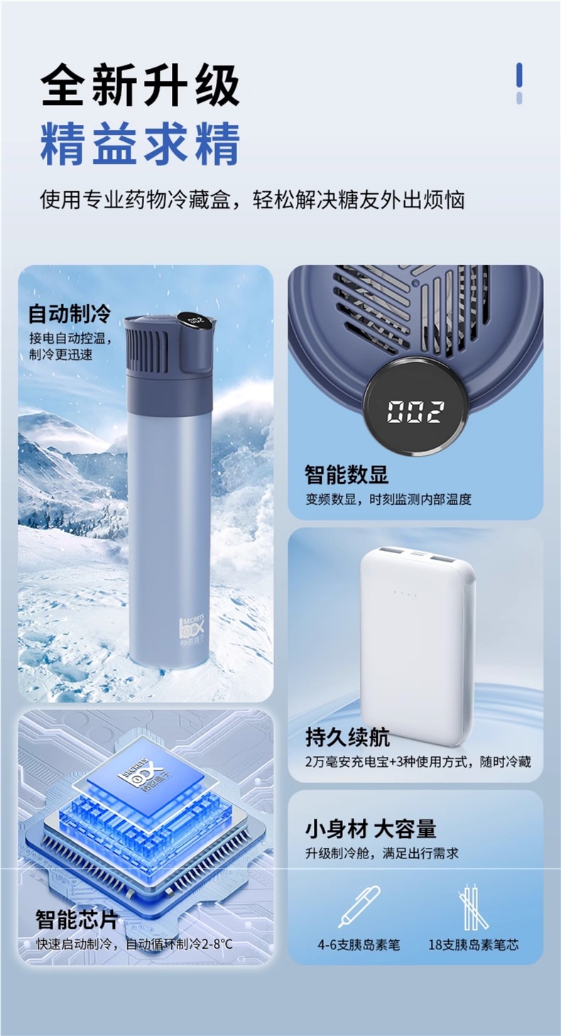 인슐린 냉장 상자, 휴대용 충전식 약물 보관 특수 자동차 미니 냉장고, 비행기 냉각 컵스토어 가기