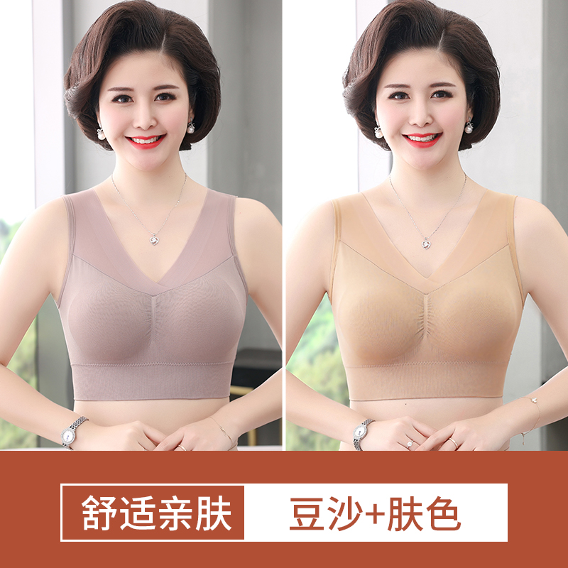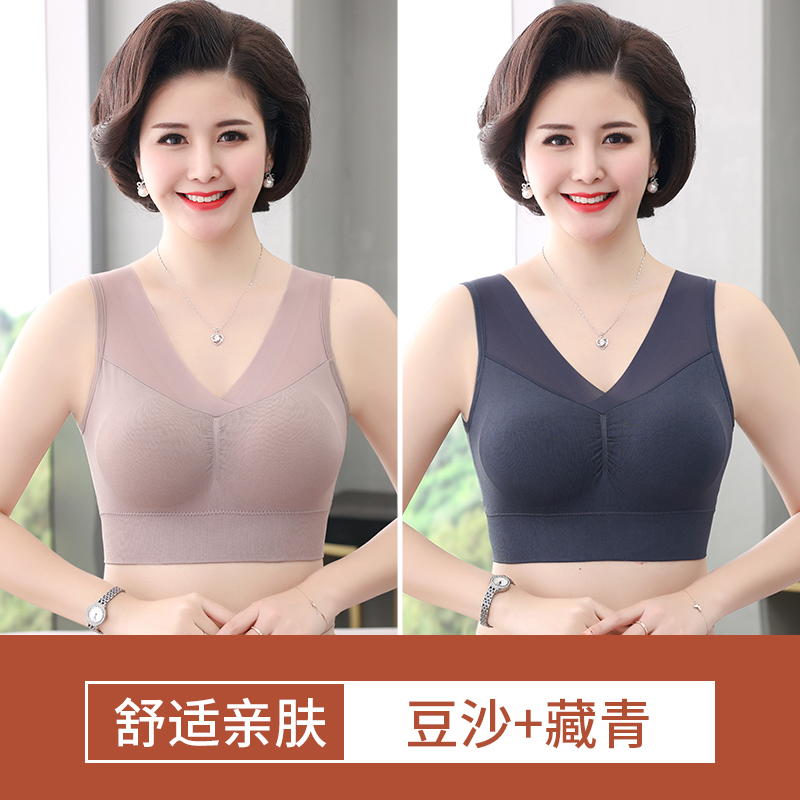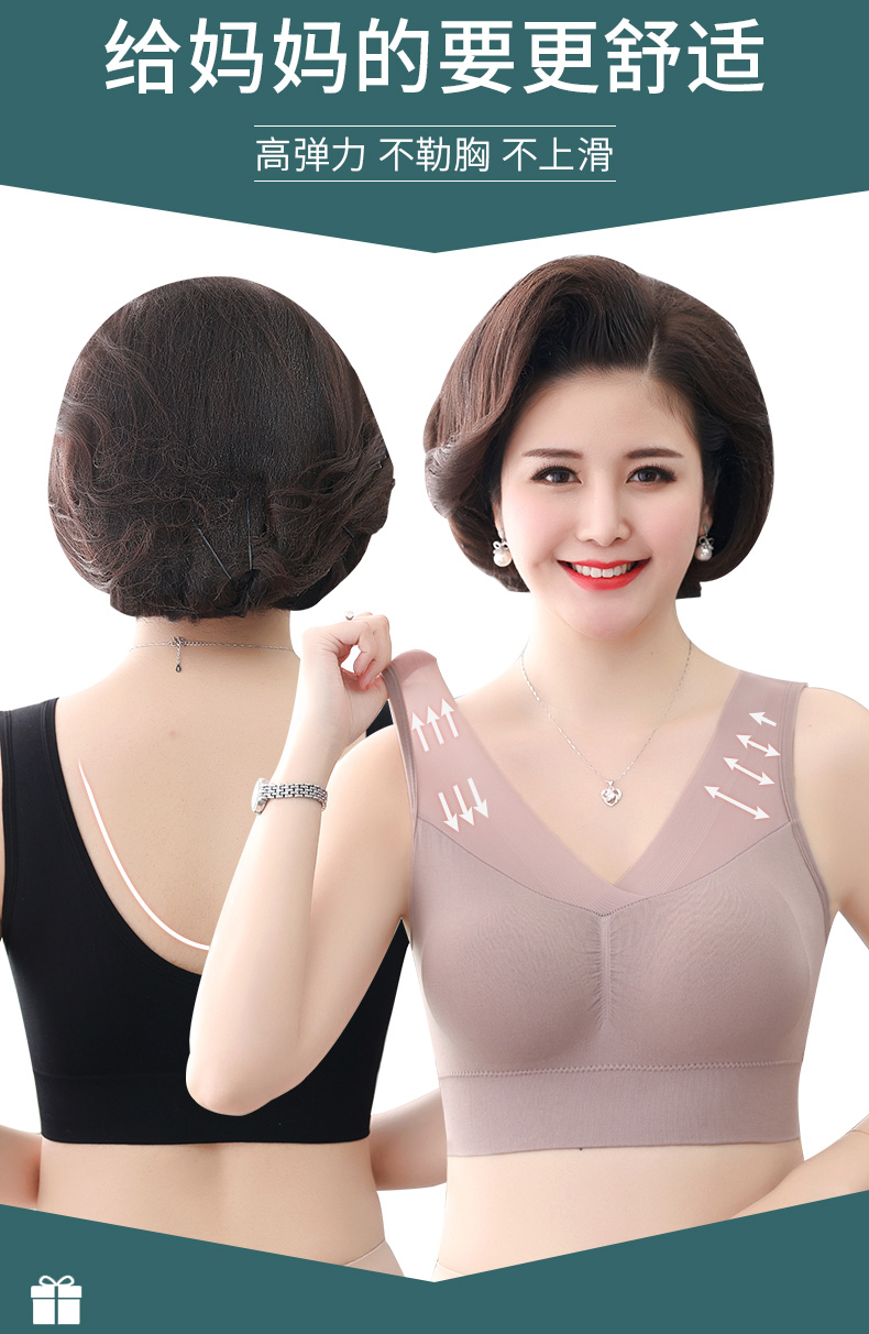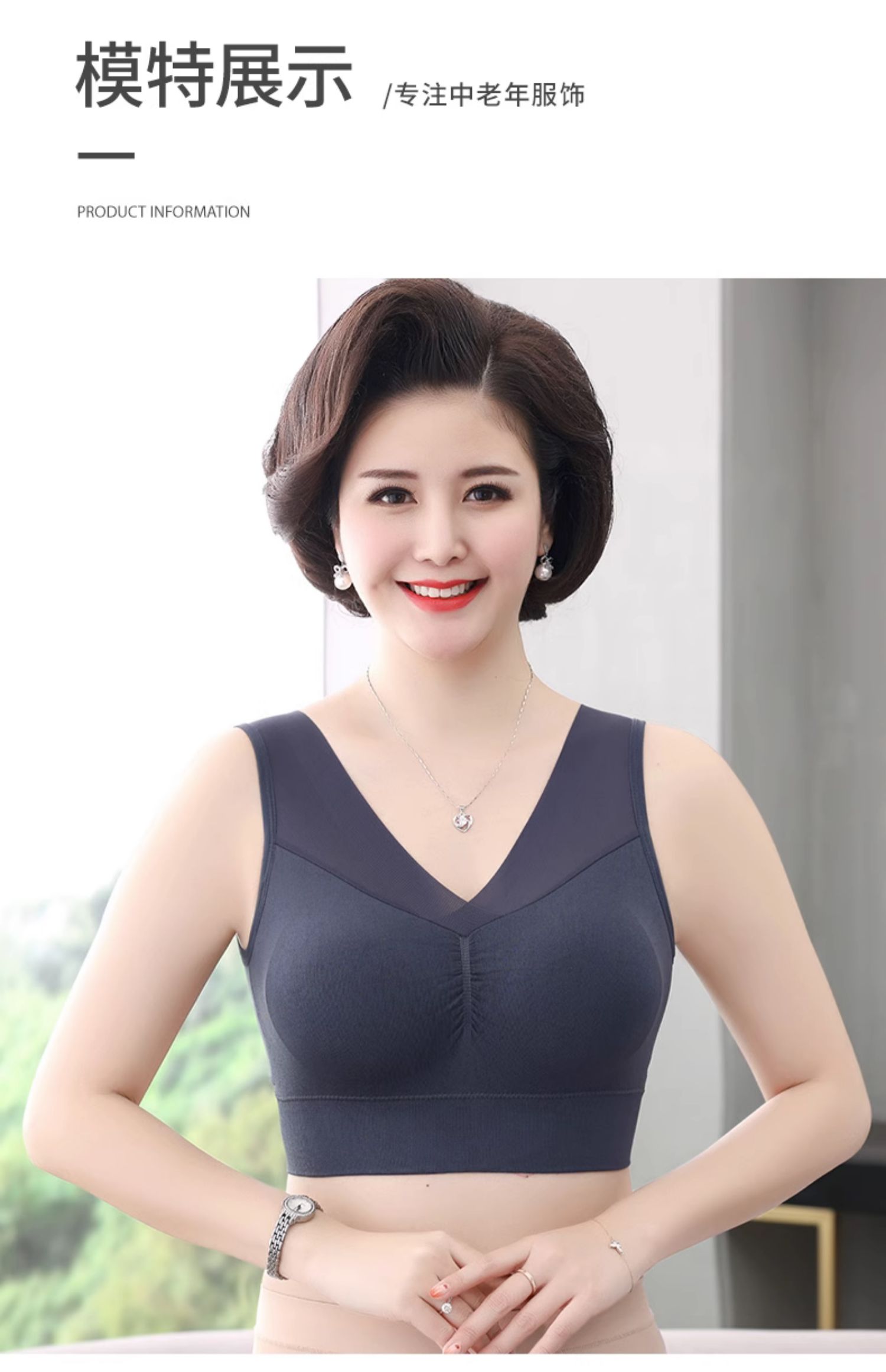 엄마 속옷, 중년 여성 노와이어 스포츠 조끼 브라, 아름다운 등, 노인을 위한 심리스 대형 얇은 브라