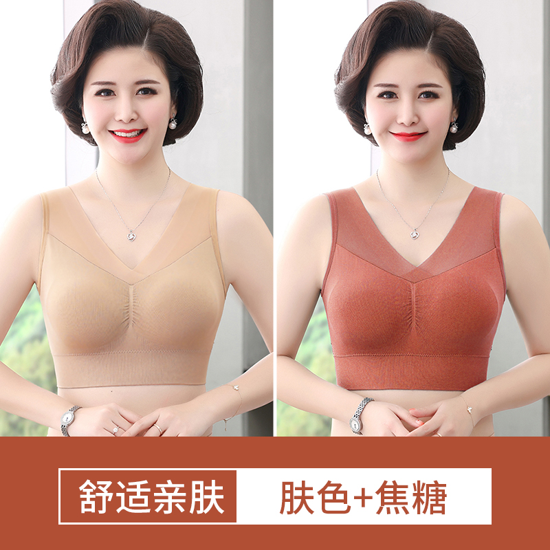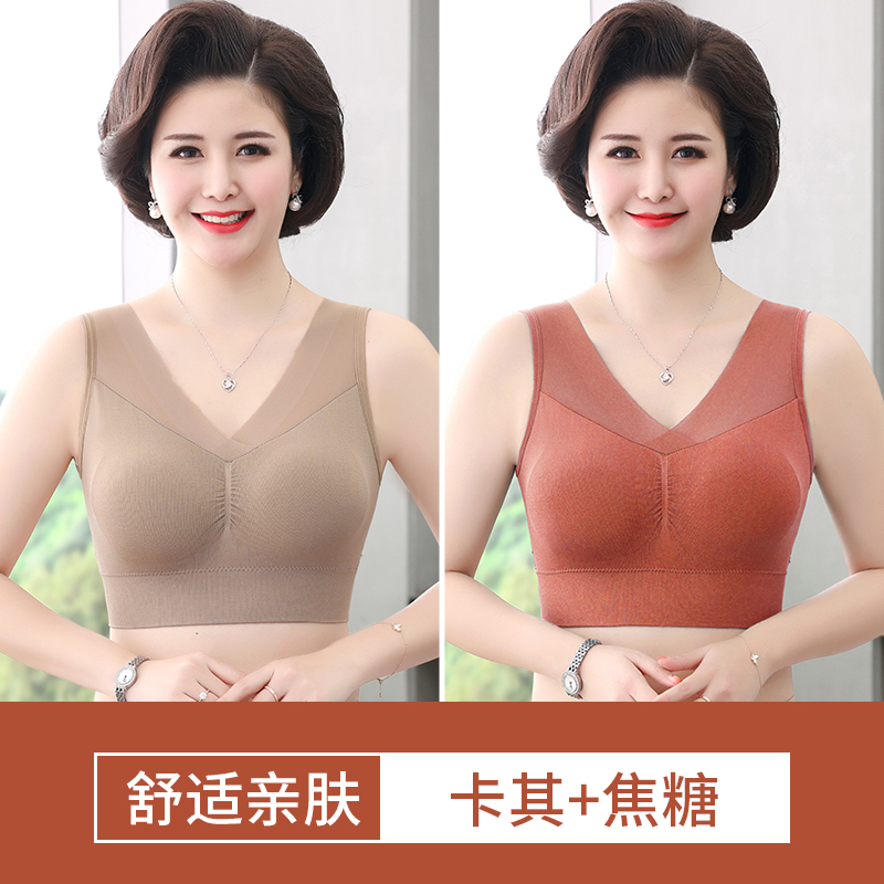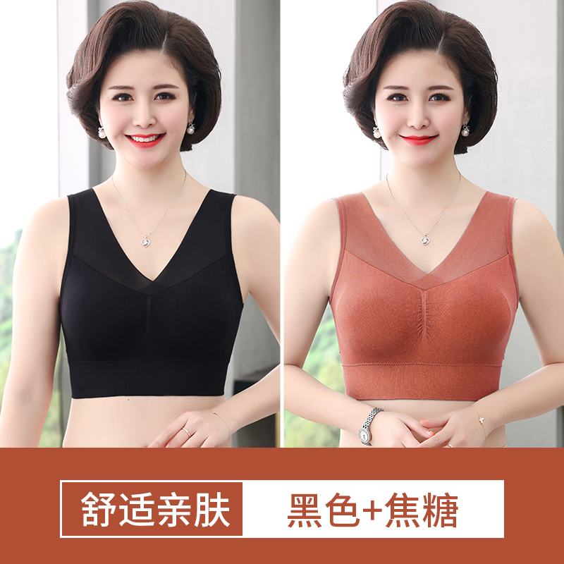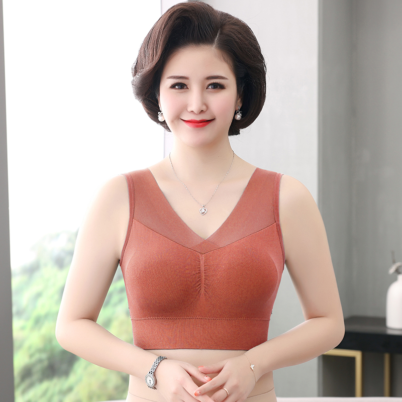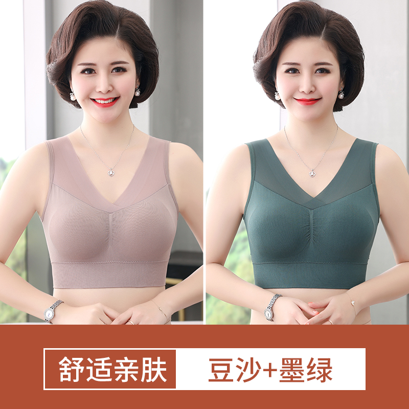 엄마 속옷, 중년 여성 노와이어 스포츠 조끼 브라, 아름다운 등, 노인을 위한 심리스 대형 얇은 브라